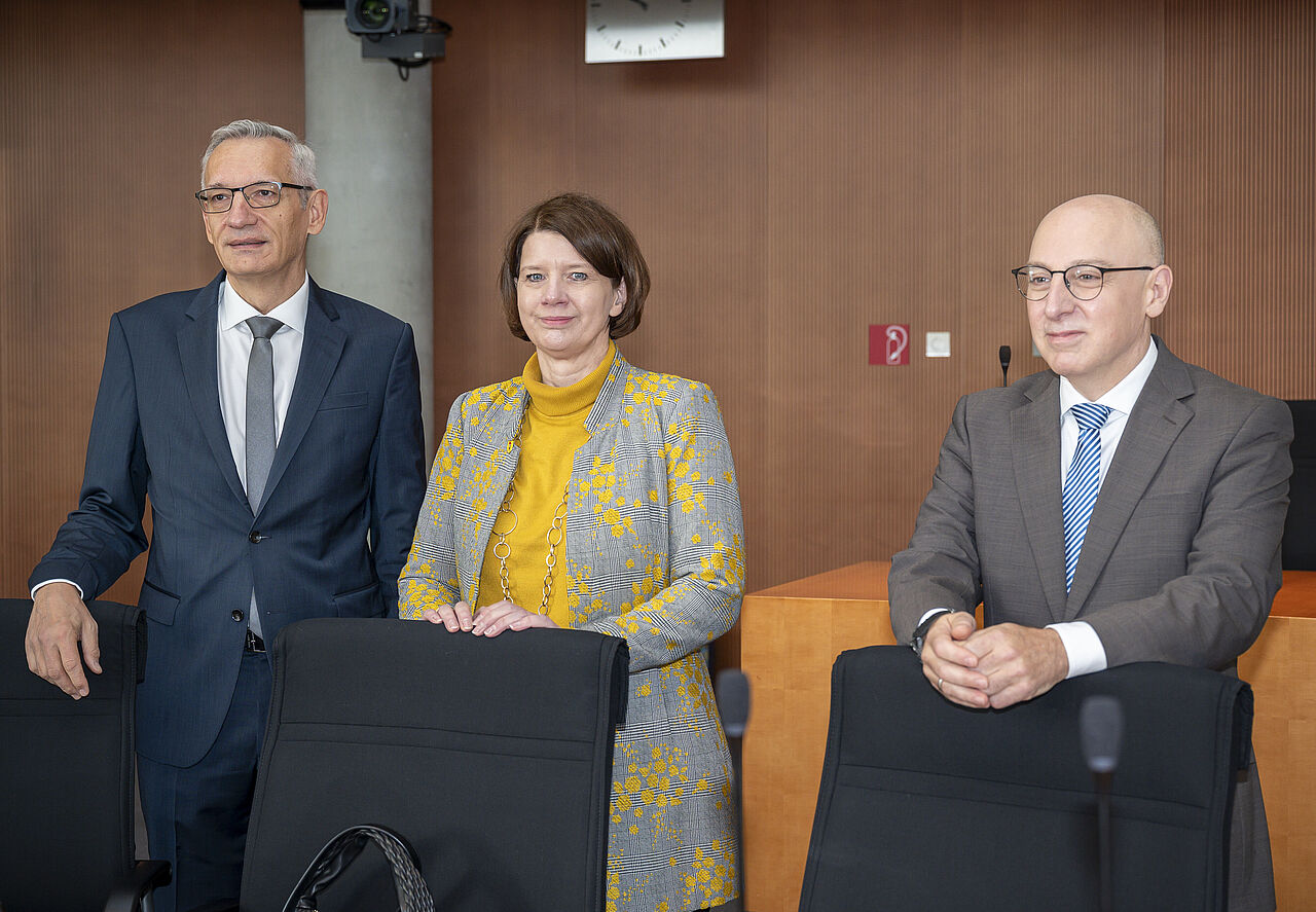 In der neunten Öffentlichen Anhörung des Parlamentarischen Kontrollgremiums berichteten die Amtsleitungen der drei deutschen Nachrichtendienste des Bundes zu aktuellen Gefahren und Herausforderungen für die deutsche Sicherheit: Martin Jäger, Präsident des Bundesnachrichtendienstes, Martina Rosenberg, Präsidentin des Bundesamtes für den Militärischen Abschirmdienst und Sinan Selen, Präsident des Bundesamtes für Verfassungsschutz. Foto: picture alliance/SZ Photo/Mike Schmidt