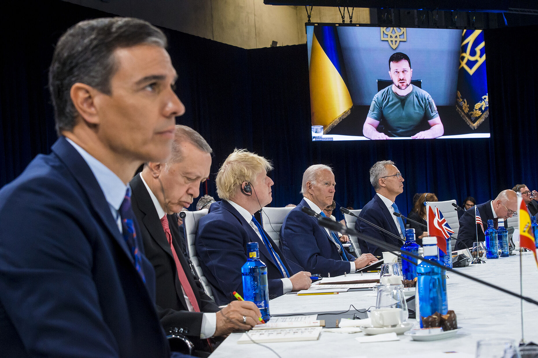 Dem Gipfel per Video zugeschaltet war der ukrainische Präsident Wolodymyr Selenskyj. Er warnte vor Angriffen Russlands auf weitere Länder und sagte, das wahre Ziel Russlands sei die NATO. Dazu setze Moskau als Instrument auch Hunger zur Verursachung von Migrationswellen ein. Die Nato sagte der Ukraine sichere Kommunikationsmittel, Treibstoff, medizinische Versorgung, Schutzwesten und Ausrüstung zur Bekämpfung von Minen sowie chemischen und biologischen Bedrohungen. Auch Hunderte tragbare Drohnenabwehrsysteme sind Teil eines Unterstützungspakets.