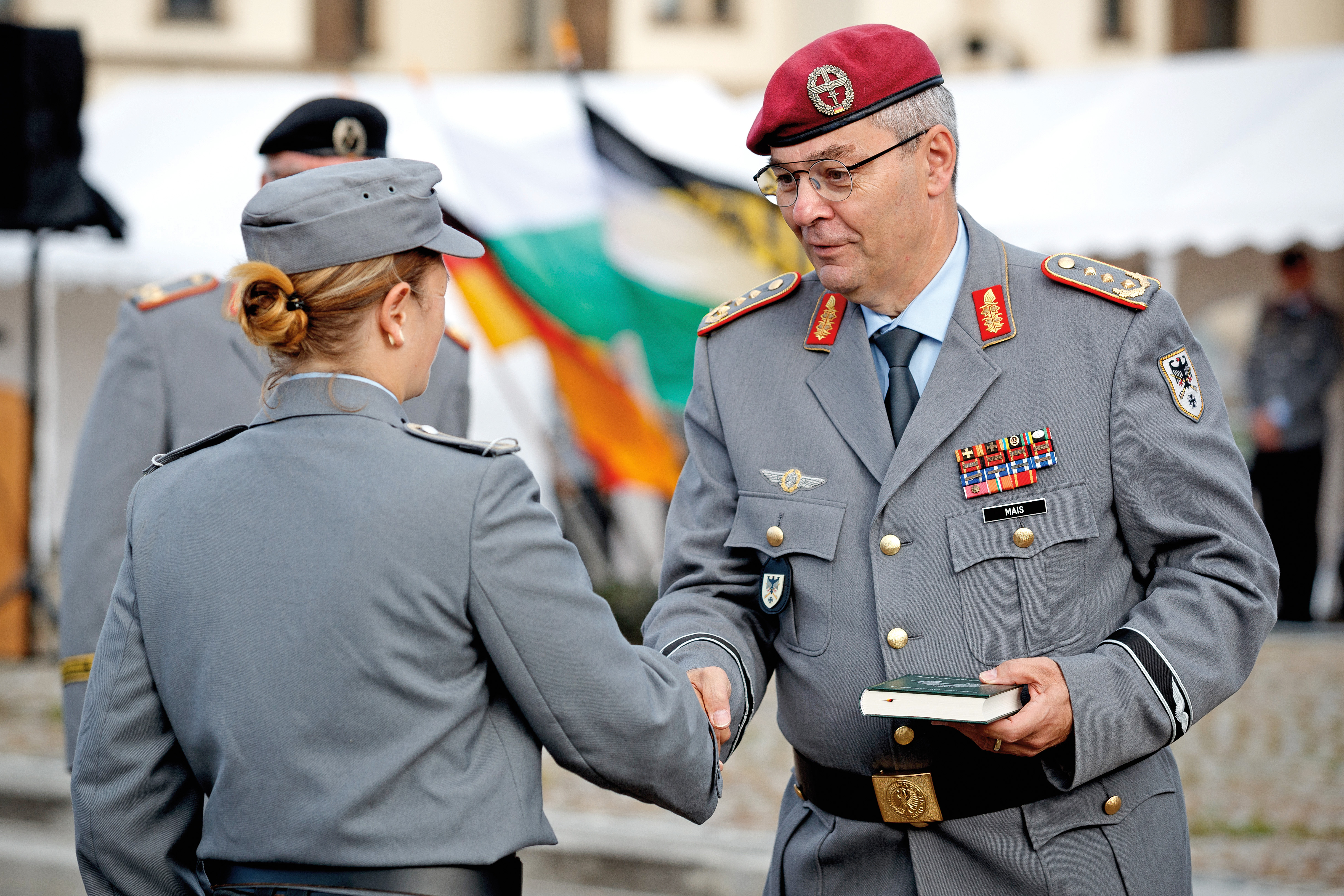 Generalleuntant Mais: Zunächst einmal den Dank für das herausragende Engagement und die hohe Leistungsbereitschaft, die ich in den letzten Jahren bei jedem Truppenbesuch gespürt habe. Wir haben eine herausragende Truppe, die zu Außergewöhnlichem in der Lage ist, wenn es darauf ankommt. Um das auch in Zukunft sicherzustellen, müssen Klarheit und Wahrhaftigkeit die Lagebeurteilungen bestimmen, um bestmögliche Grundlagen für das notwendige Handeln zu schaffen.