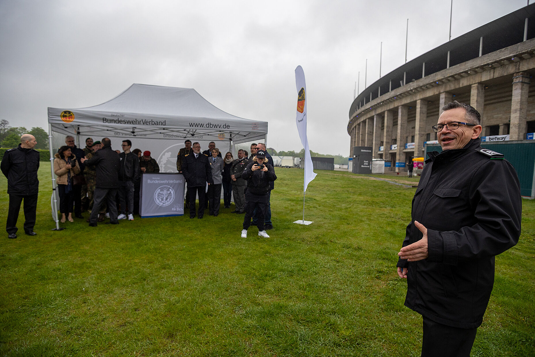 Für Stabsfeldwebel Thomas Schwappacher war der Tag „ein tolles Ereignis“. Für den DBwV sei es eine Selbstverständlichkeit, solche Veranstaltungen zu fördern und zu unterstützen – schließlich geht es um den so wichtigen Rückhalt für die Bundeswehr in der Bevölkerung. „Das Feedback unter den Soldatinnen und Soldaten hier im Stadion ist durchweg positiv, alle sind begeistert“, sagt Schwappacher. Und weiter: „Wir sind begeistert, dass so viele Soldaten sich heute hier präsentieren können. Alle sagen: Es ist ein tolles Ereignis. Auch dafür möchte ich mich im Namen aller Soldatinnen und Soldaten herzlich bedanken, dass Hertha es ermöglicht hat, dass wir uns mit den entsprechenden Tickets dieses Bundesligaspiel im Abstiegskampf ansehen können.“