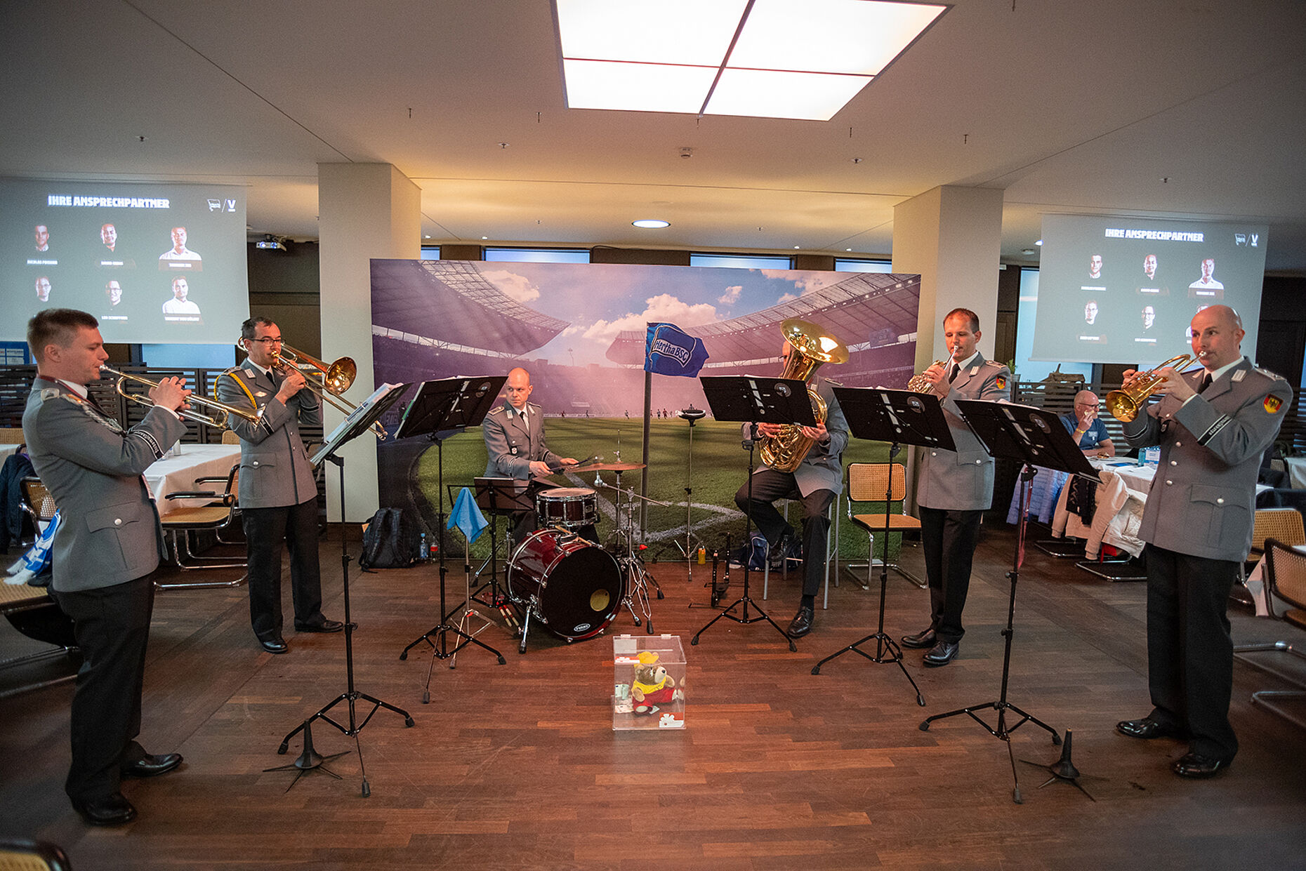 In Berlin war die Hertha bereits mehrfach guter Gastgeber für die Menschen der Bundeswehr, zuletzt im März 2020, kurz bevor die Corona-Pandemie das Leben in Deutschland zum Stillstand brachte. Die „alte Dame“ Hertha pflegt zudem eine Partnerschaft mit der Besatzung des Einsatzgruppenversorgers „Berlin“. Klar, dass auch die Besatzung des Marine-Schiffs eine kleine Delegation ins Olympiastadion entsandte, um sich dort zu präsentieren.