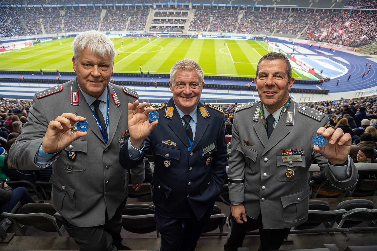 Hertha BSC Berlin und die Bundeswehr – das passt wunderbar zusammen. Deutlich wurde dies erneut am 31. Spieltag der Fußball-Bundesliga: Zum Heimspiel gegen den VfB Stuttgart waren aktive wie ehemalige Soldatinnen und Soldaten sowie Zivilbeschäftigte der Bundeswehr eingeladen.