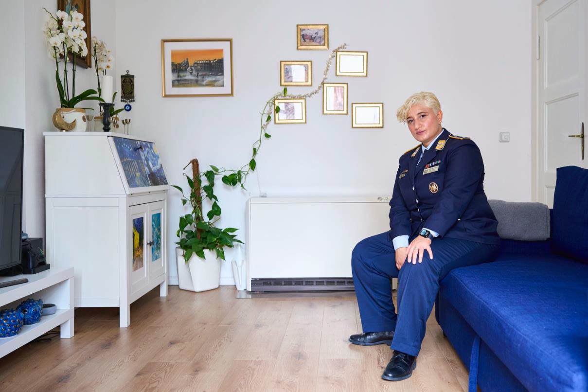 Der Berliner Fotograf Jan Kraus widmet sich dieser Frage in seiner fortlaufenden Porträtserie „In Uniform“. Er zeigt Soldatinnen und Soldaten, Polizistinnen und Polizisten sowie Richterinnen und Richter nicht im Dienst, sondern zu Hause — in ihrem persönlichen Umfeld. Genau dort, wo das Amt endet und der Mensch beginnt.