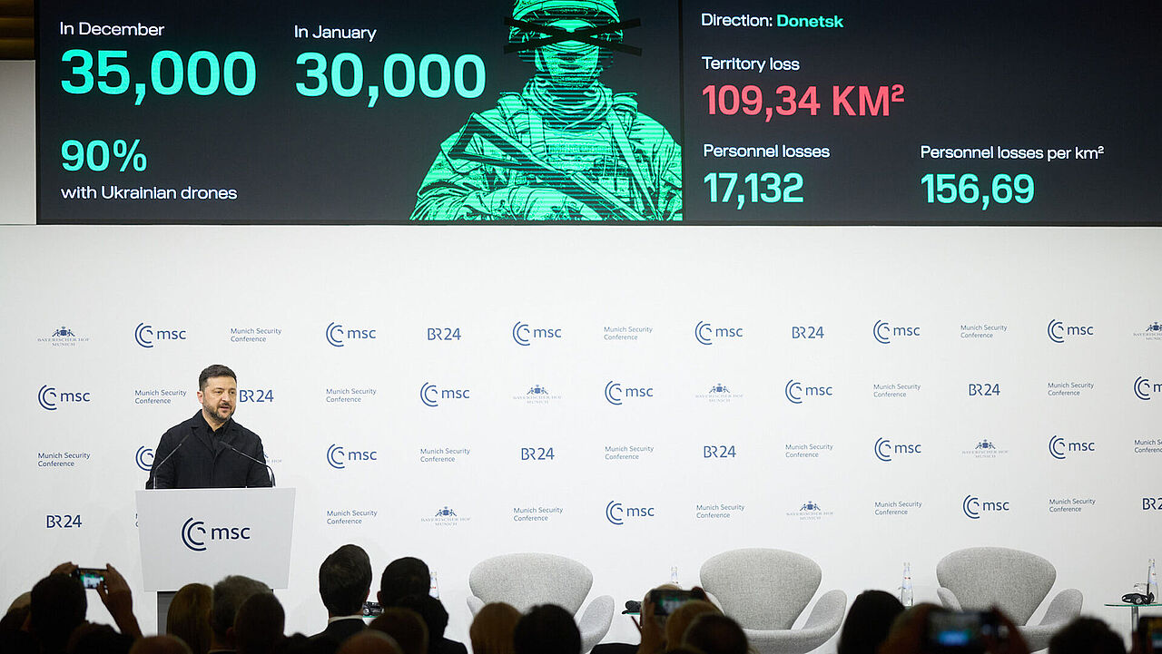 Der ukrainische Präsident Wolodymyr Selenskyj bei der Münchner Sicherheitskonferenz: Wunsch nach "echtem Frieden". Foto: picture alliance/SvenSimon-PresidentialOfficeUkra/Presidential Office of Ukraine