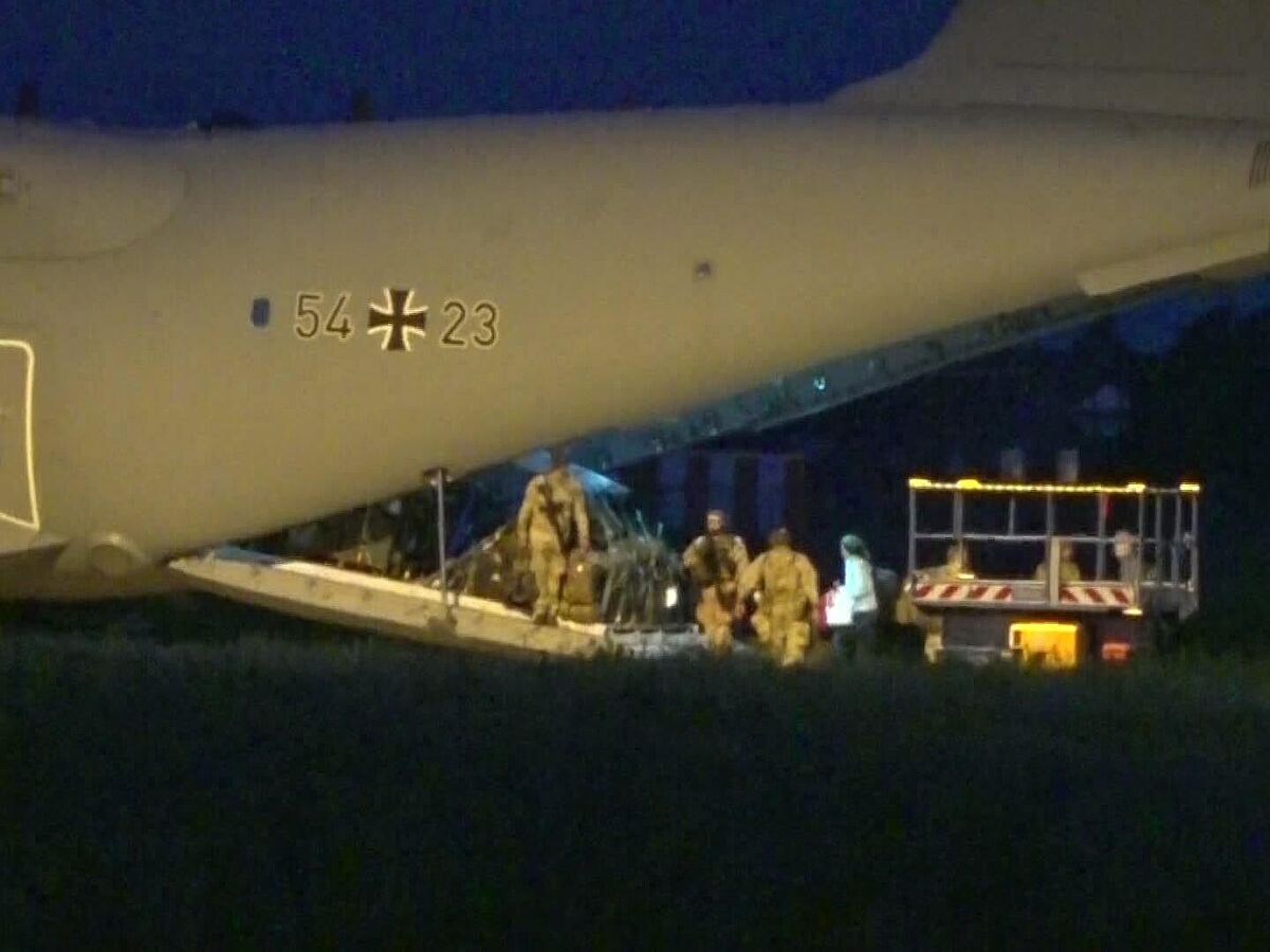 Bundeswehrsoldaten besteigen im August 2021 einen Airbus A400M der Luftwaffe, um zur Evakuierungsaktion Richtung Kabul aufzubrechen. Foto: picture alliance/dpa/TNN/Fernando Martinez