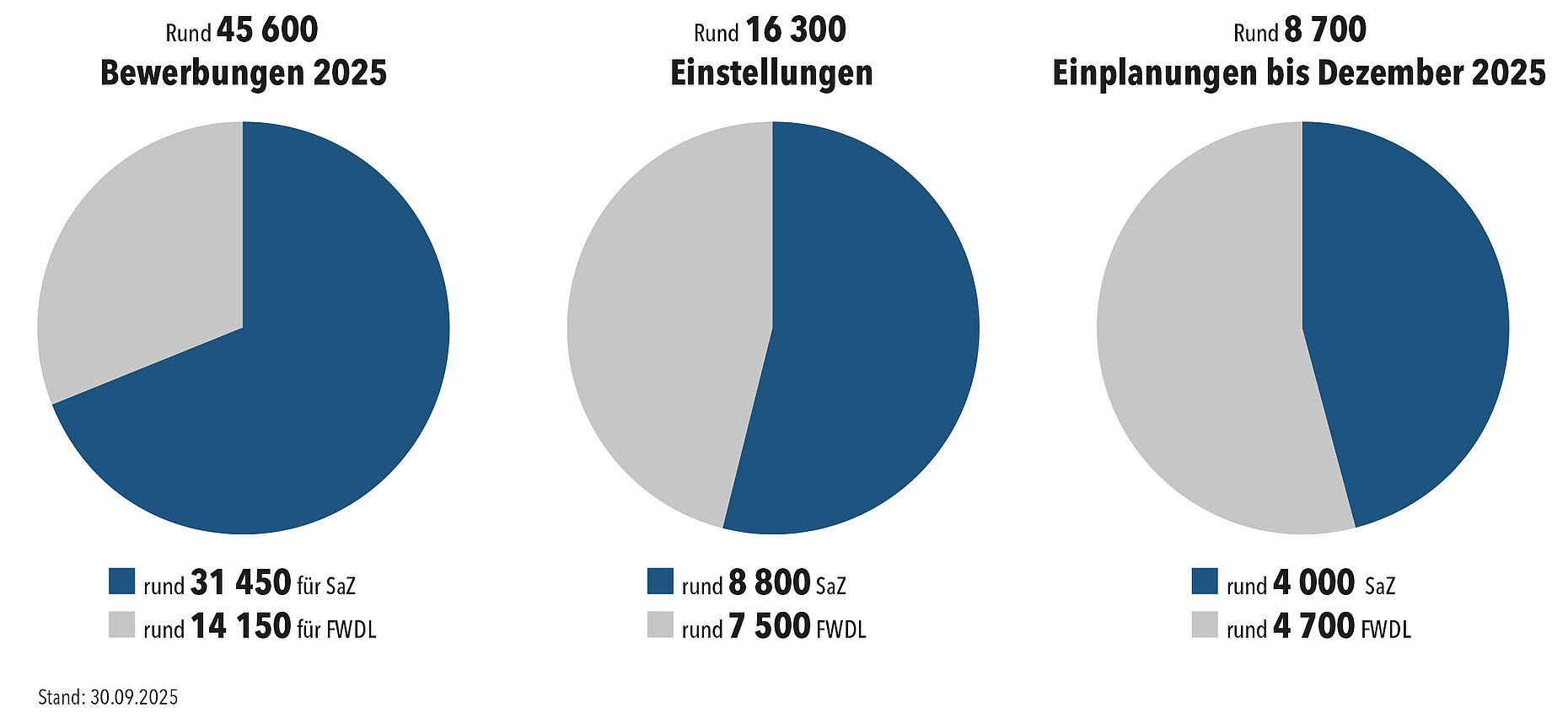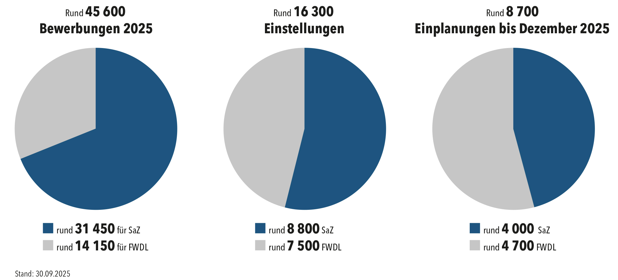 Wer bedenkt, dass die Bundeswehr im Jahr 2020 über rund 185.200 Soldaten verfügte und welcher Kraftakt es war, den zwischenzeitlichen Rückgang auf gar 180.000 Soldaten zu stoppen und umzukehren, kann erahnen, vor welcher Herausforderung die Bundeswehr heute steht und in der Zukunft stehen wird. Ein Mehr an Einstellungen reicht allein nicht aus. Entscheidend ist, dass der richtige Mann oder die richtige Frau – optimal ausgebildet – auf dem Dienstposten sitzt, auf dem er oder sie für die Auftragserfüllung des Verbandes, des Geschwaders oder der Flottille benötigt wird.
