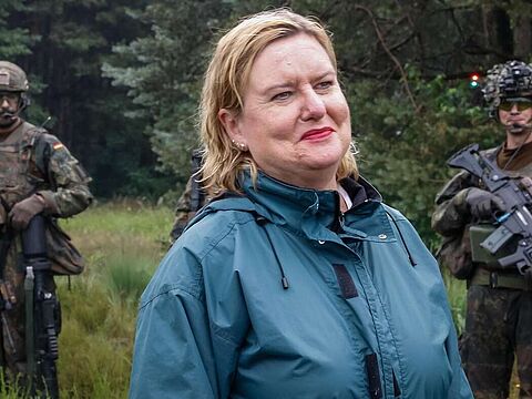 Bei "bestem Grenadierwetter" verschaffte sich Verteidigungsministerin Christine Lambrecht in Munster einen Eindruck von den Fähigkeiten des Heeres. Foto: Bundeswehr/Mario Baehr