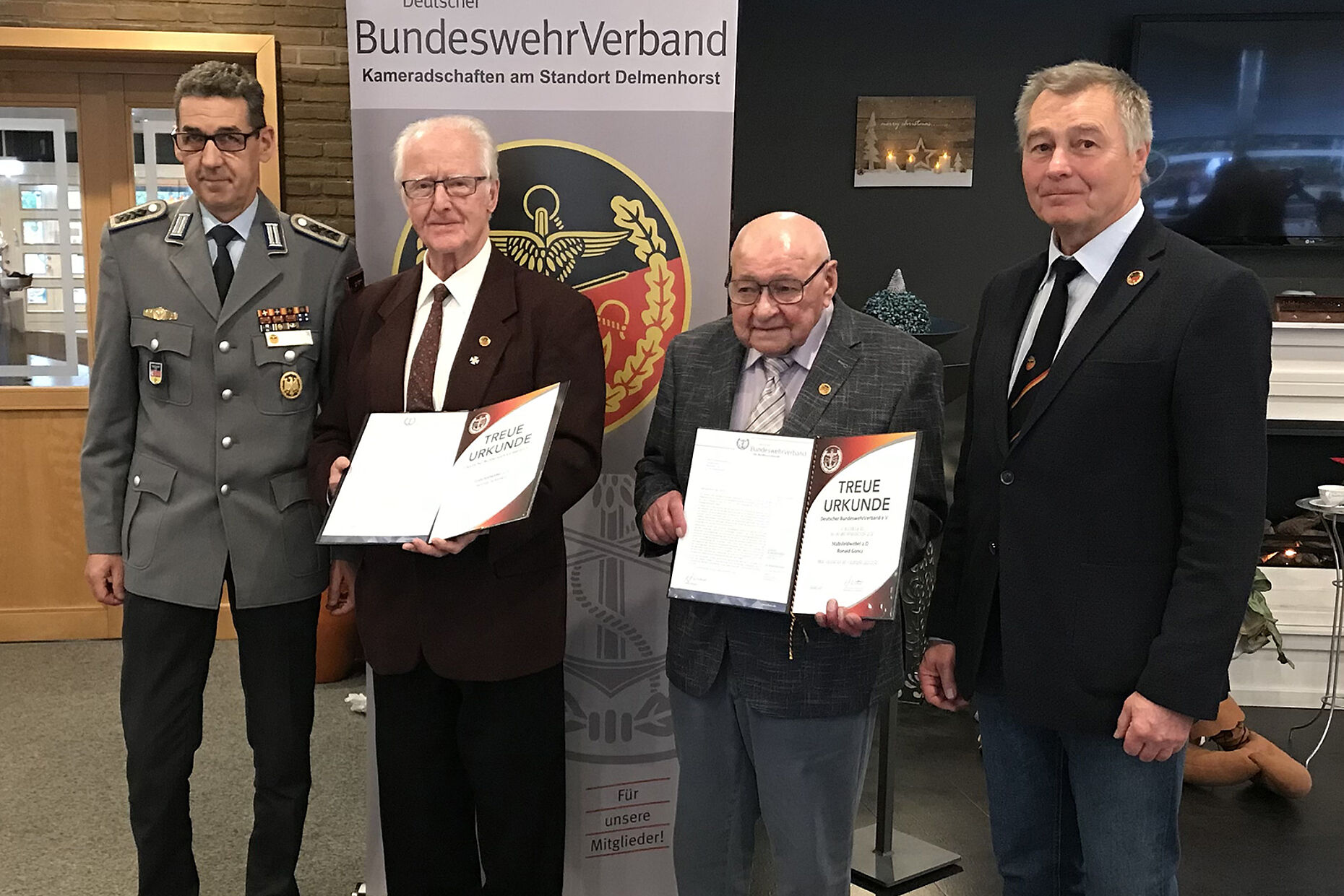 Delmenhorst. Die Delmenhorster Kameradschaft der Ehemaligen, Reservisten und Hinterbliebenen traf sich am 1. Advent zum traditionellen Jahresabschlussessen. Der Vorsitzende Oberstleutnant a.D. Harald Mauritz begrüßte dazu im Namen des Vorstands 51 Personen, Mitglieder und deren Angehörige. Als Gäste wurden der Bezirksvorsitzende Oberstabsfeldwebel Oliver Sekuli, der örtliche Vorsitzende der Standortkameradschaft Oberstleutnant Marcus Jansen und der Vorsitzende der Reservistenkameradschaft Delmenhorst, Hauptmann d.R. Hartmut Oettel, willkommen geheißen.