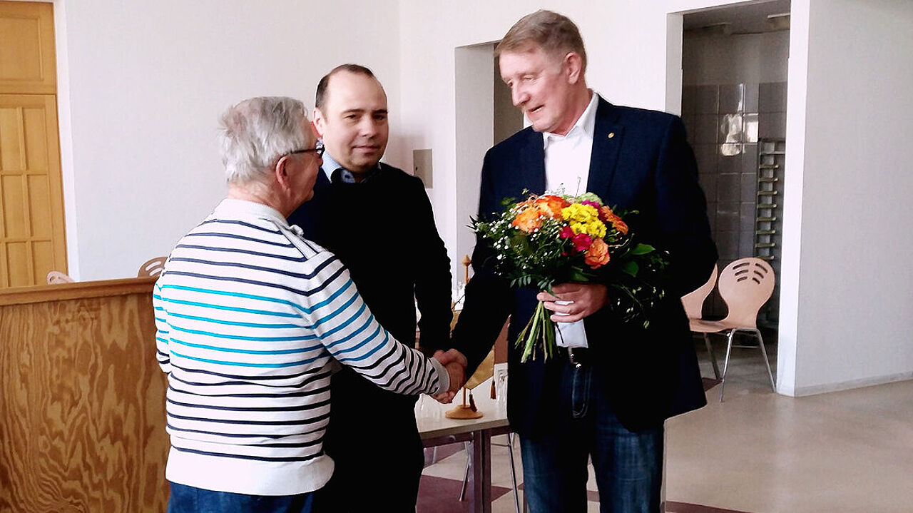 Verabschiedung von OTL a.D. Fehlisch (links) durch Hptm Baasch (mitte) und Hptm d.R. Viertel (rechts). Foto: sKERH/Mehner