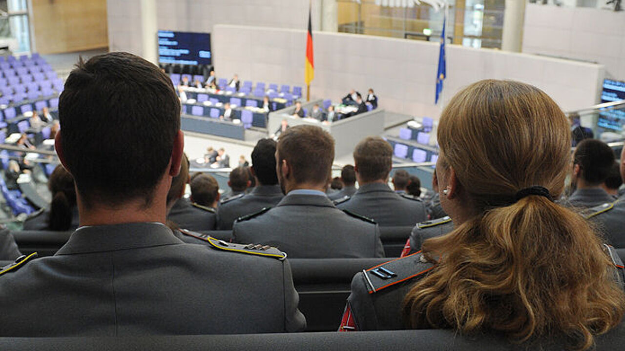Am Morgen nach dem Zapfenstreich folgte die Parlamentsdebatte zum 60-jährigen Bestehen der Bundeswehr. Die Redner, darunter die verteidigungs- und sicherheitspolitischen Sprecher aller Fraktionen, waren sich bis auf Ausnahme der Fraktion Die Linke einig: Die Bundeswehr ist in ihrer gefestigten Rolle als Parlamentsarmee und mit den vielen gemeisterten Herausforderungen im In- und Ausland für die heutige Bundesrepublik nicht wegzudenken. Der Bundesvorsitzende des Deutschen BundeswehrVerbands, Oberstleutnant André Wüstner, und sein Stellvertreter, Hauptmann Andreas Steinmetz, nahmen an der Plenarsitzung teil. Sie folgten dabei auch den Dankesworten, die Henning Otte, CDU/CSU, und Rainer Arnold, SPD, an die Soldaten für deren Leistungen und Entbehrungen im Einsatz richteten. Gleichzeitig hat der Bundestag die beiden Missionen UNMISS im Südsudan und UNAMID in der sudanesischen Krisenregion Darfur um ein weiteres Jahr verlängert. Bis zu 50 Soldaten je Mission sollen zur Friedenssicherung beitragen. Zur Zeit sind insgesamt 23 Soldaten der Bundeswehr vor Ort.