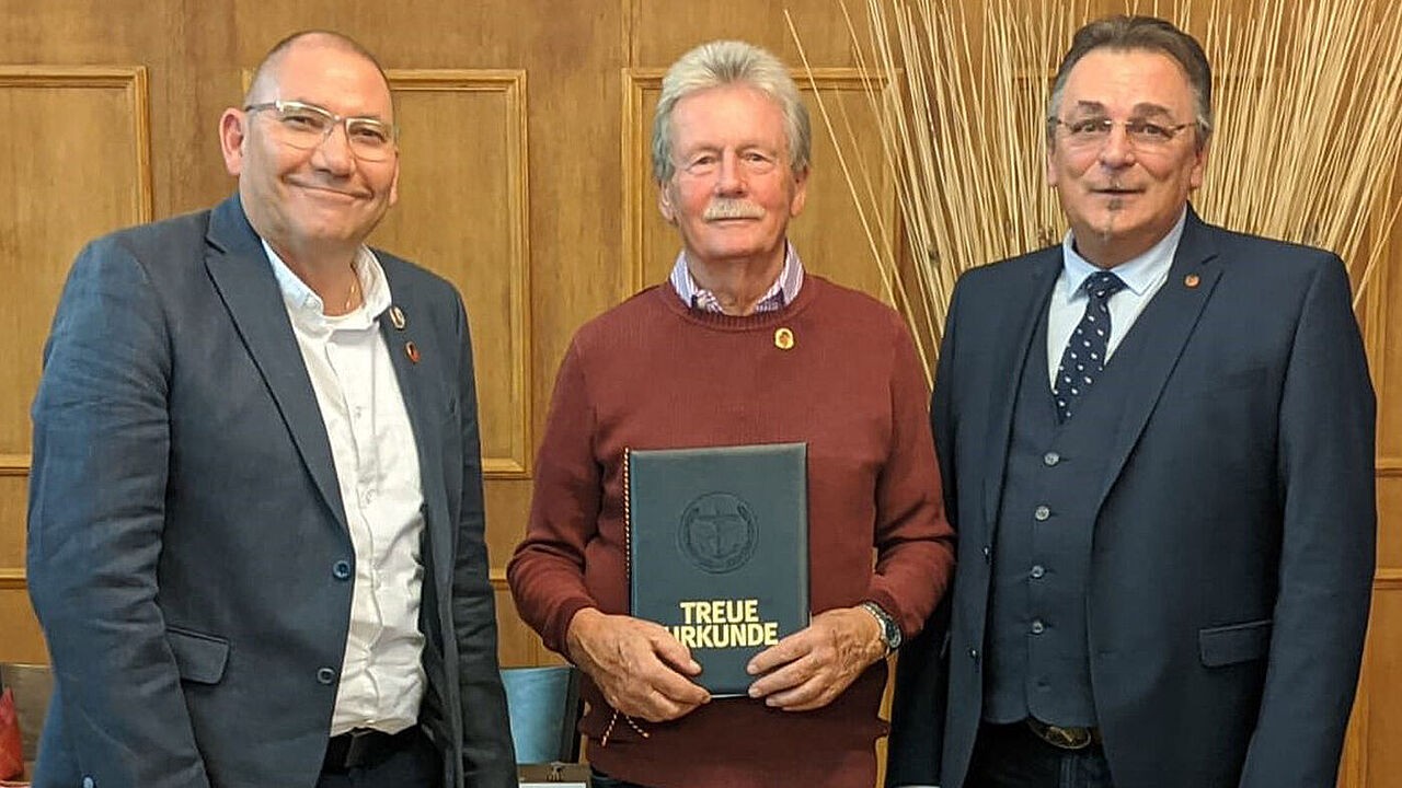 Vorsitzender Oberstabsfeldwebel a.D. Hans-Henning Runge (v. l.), Stabsfeldwebel a.D. Horst Schnirch und Bezirksvorsitzender Franz Jung. Foto: DBwV