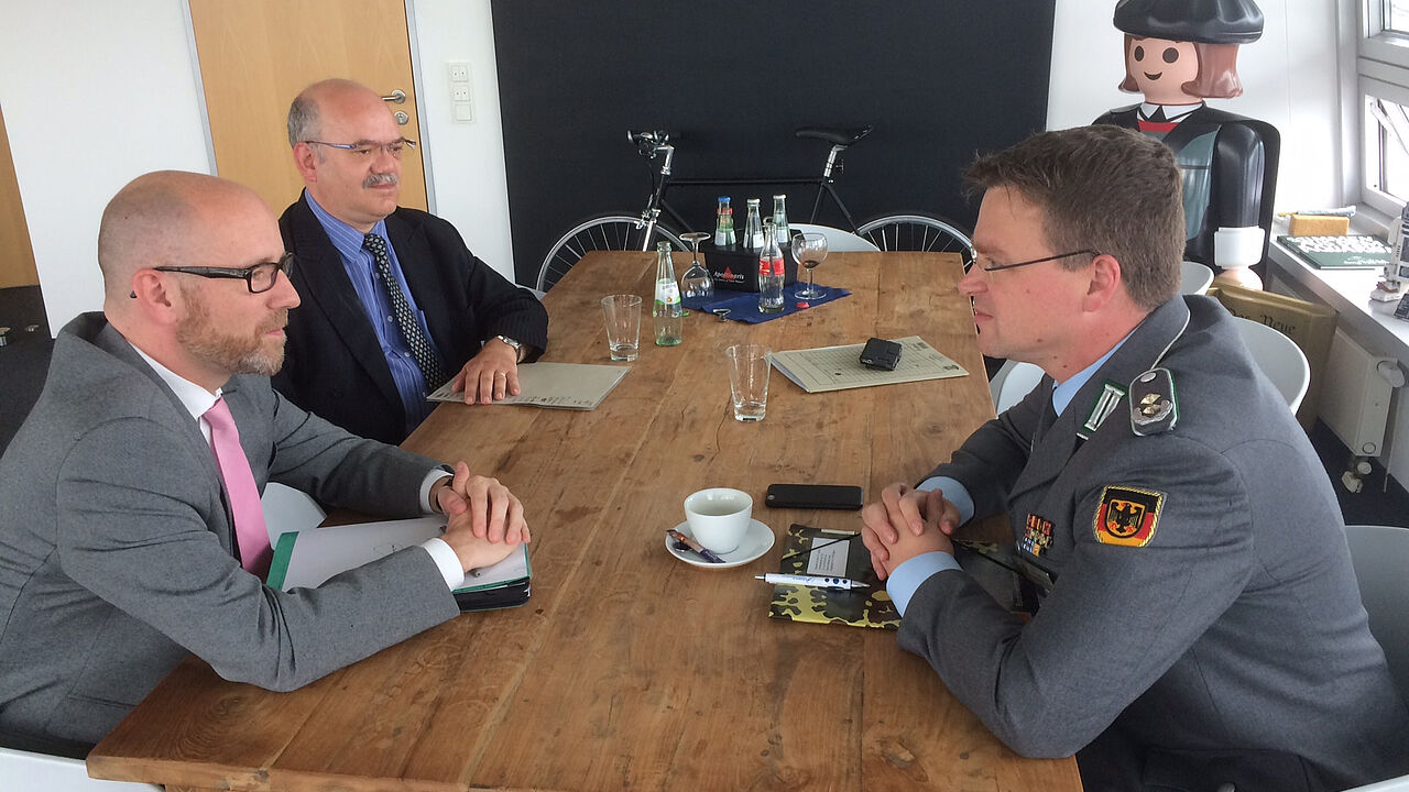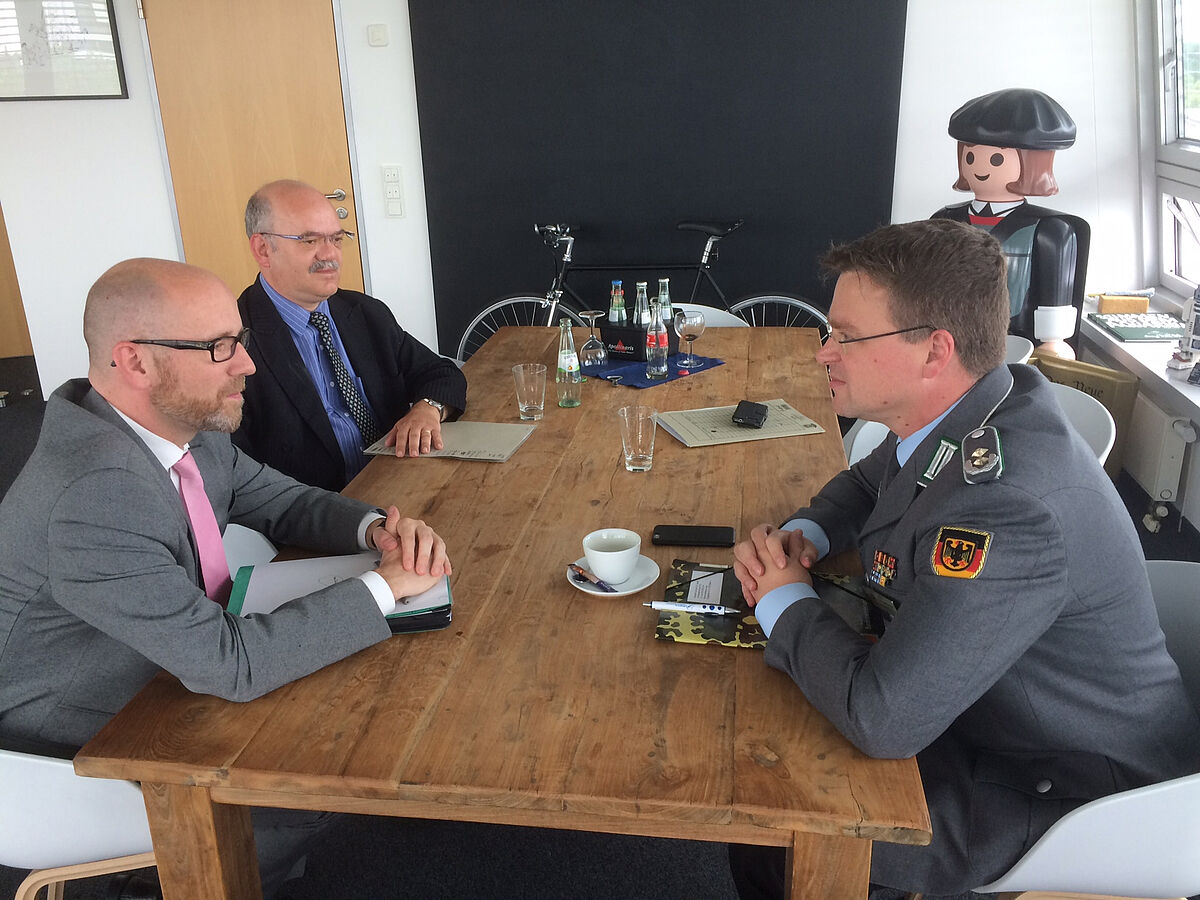 Natürlich war auch die aktuelle Situation Thema des Treffens. Der Bundesvorsitzende umriss die angespannte Vertrauenslage in der Bundeswehr und deren Gründe und zeigte zugleich Wege auf, das Vertrauen zurückzugewinnen. Als Reserveoffizier und Historiker verfügt Peter Tauber über ein sehr differenziertes Gespür für die Besonderheit des Soldatenberufs und dessen Notwendigkeit einer Orientierung in Tradition und Geschichte. Er sei optimistisch, dass es gelingen werde, hier wieder ins Lot zu kommen. Nicht zuletzt deswegen, weil der DBwV als Interessenvertretung der Menschen der Bundeswehr sich in diesen Prozess einbringe.