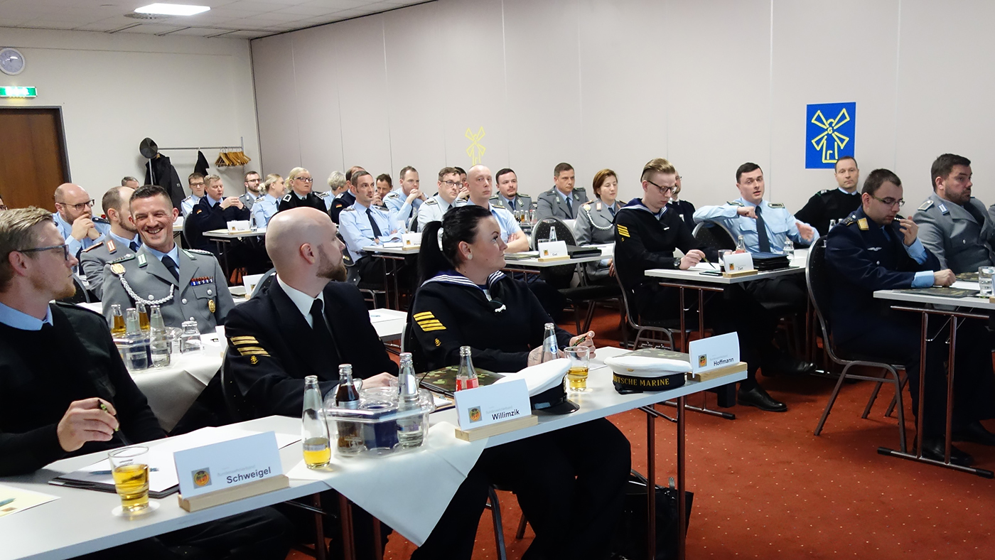 Die „Kooperation Bundeswehr und Wirtschaft zur Eingliederung von Soldaten“ erklärte Oberregierungsrat Markus Krämer, Referent im Bundesamt für Personalmanagement der Bundeswehr. In seinem Vortrag ging er auf die verschiedenen Aufgaben des Berufsförderungsdienstes ein und betonte, wie wichtig für den künftigen Arbeitgeber Qualifizierungen seien. Hauptmann Mike Götze vom Karrierecenter der Bundeswehr Berlin trug zum Thema Personalbindung vor. Was ist der Auftrag? Die Trendwende Personal eröffne dem Zeitsoldaten sehr viele Möglichkeiten, um sich länger zu verpflichten. Herausforderungen in allen Laufbahngruppen Zur Tagung gehörte der Workshop „Probleme des Truppenalltags“. Die Anwesenden waren aufgefordert, getrennt in den Statusgruppen die Situation zu diskutieren und das Ergebnis vor dem Gremium darzustellen. Der Sprecher der Arbeitsgruppe Mannschaften, Stabsgefreiter Tobias Zart, fasste zusammen: „Zu kritisieren sind mangelnde Angebote seitens des Bundesamtes, der Personalfeldwebel und der Vorgesetzten im Bereich der Personalbindung spezifisch der Weiterverpflichtung und dass die Kameradschaft durch die sogenannte Kaserne 2000 nicht mehr gewährleistet wird.“