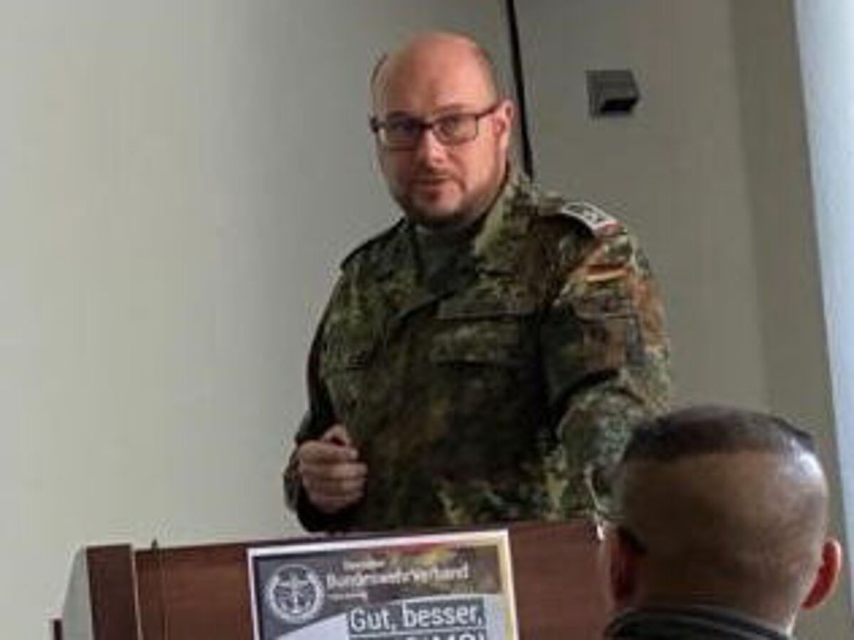 Kurzerhand nahm er hierzu Kontakt zum Landesvorsitzenden, Oberstleutnant a.D. Thomas Sohst, auf und ließ sich mit den nötigen Informationen „quasi aus erster Hand“ versorgen. In rund 80 Minuten konnte Blobel so den Bogen von der Basisarbeit vor Ort bis hin zu Themen der „großen Berliner“ Verbandspolitik spannen.