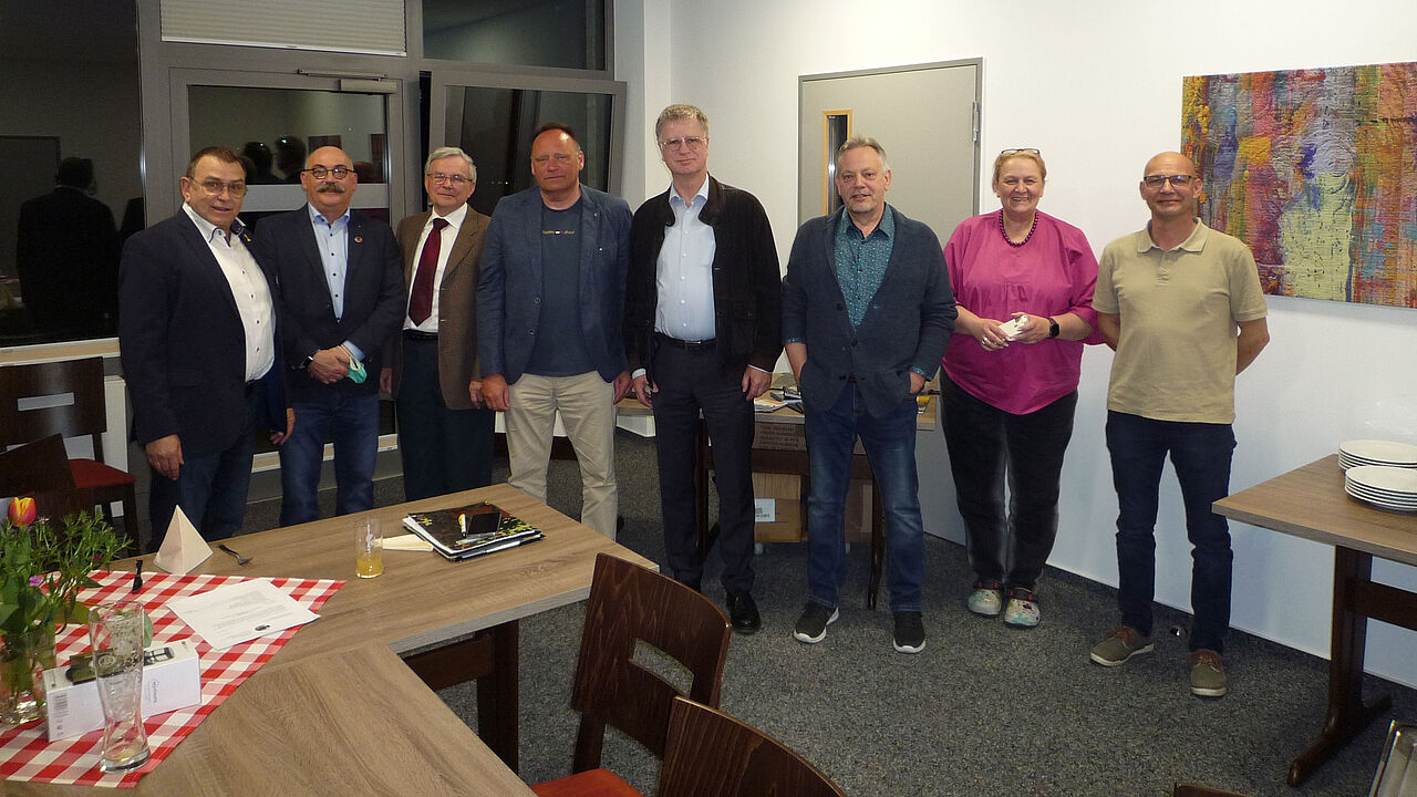 (v.l.) Oberstabsfeldwebel a.D. Rudolf Schmelzer mit den Vorstandsmitgliedern Stabsfeldwebel a.D. Roland Steindl, Oberstabsfeldwebel a.D. Peter Kleinschmidt, Stabsfeldwebel a.D. Bernd Dieckmann, Oberfeldarzt a.D. Dr. Detlef Hackbarth, Stabsbootsmann a.D. Peter Kaup und Sabine Freischläger Stabsfeldwebel a.D. Andreas Mallmann. Foto: KERH Lippe-Detmold