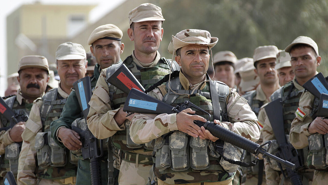 Peschmerga trainieren in der Kaserne in Erbil. Auch die Ausbildungsunterstützungsmission der Bundeswehr im Nordirak wird in der kommenden Woche im Bundestag beraten. Foto: Bundeswehr/Bienert