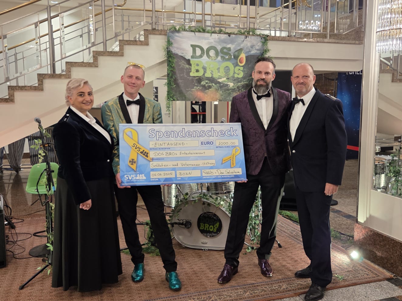 Ein buntes musikalisches Programm sorgte für die gewohnt ausgelassene und familiäre Atmosphäre, für die das Team Luftwaffe bekannt ist. Unter den Akteuren des Abends waren die DOS BROs. Das Musiker-Duo mit Hauptmann Chris Müller und Hauptfeldwebel Colin Schiemann hatte aber nicht nur humorvolle Musik im Gepäck, sondern auch noch eine dicke Überraschung: Zugunsten der Soldaten- und Veteranen-Stiftung (SVS) übergaben die Musiker eine Spende von 1000 Euro an Heiko Stotz und Hülya Süzen. Der Vorstand Luftwaffe freute sich über die über die Überraschung: „Von uns geht ein dickes Dankeschön, auch im Namen der SVS, an die DOS BROs. Super gemacht, Jungs!“