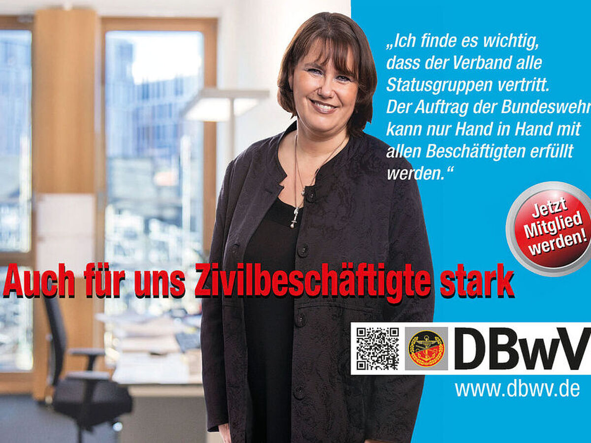 „Ich finde es wichtig, dass der Verband alle Statusgruppen vertritt, denn der Auftrag der Bundeswehr kann nur Hand in Hand mit den Beschäftigten aller Statusgruppen erfüllt werden.“Carola Schlick, BeamtinCarola Schlick ist Beamtin und im Referat R II 1 des Bundesministeriums der Verteidigung für Organisations-, Personal- und Haushaltsangelegenheiten des Organisationsbereichs Rechtspflege, das heißt für die Dienststellen Truppendienstgerichte und den Bundeswehrdisziplinaranwalt zuständig. Wenn die 52-Jährige aber selbst Rechtsfragen hat, greift sie gerne auf das Wissen des Deutschen BundeswehrVerbands zurück. Sich vertrauensvoll in dienstlichen Angelegenheiten an die Interessenvertretung der Menschen in der Bundeswehr zu wenden, bietet ihr Sicherheit. „Es stärkt im Zweifel die dienstliche und persönliche Position in Krisensituationen“, sagt die Beamtin. Deswegen hat sie sich in einer eigenen Personalangelegenheit bereits juristisch durch den DBwV beraten lassen. Denn das macht der Verband für alle seine Mitglieder – nicht nur für Soldaten. „Ich finde es wichtig, dass der Verband alle Statusgruppen vertritt, denn wenn der Auftrag der Bundeswehr Hand in Hand mit den Beschäftigten aller Statusgruppen erfüllt wird, ist es nur folgerichtig, auch die Interessenvertretung der Beschäftigten gemeinsam zu betreiben“, erklärt die Sachbearbeiterin, die auch Mitglied des Gesamtpersonalrats beim BMVg ist. Für die Beamtin ist entscheidend, dass der Deutsche BundeswehrVerband auch Verantwortung für die Belange der Beamten und Beamtinnen übernimmt. „Denn nur eine Interessenpolitik aus einer Hand für alle Menschen in der Bundeswehr führt zu tragfähigen Lösungen“, erläutert Schlick. Sie ist von diesem Konzept überzeugt, denn: „Die Möglichkeit des stetigen Dialogs mit allen Statusgruppen führt zu einem großen Spektrum an Erkenntnissen, die für den Interessenausgleich der Beschäftigten der Bundeswehr und des Bundesministeriums der Verteidigung nötig ist“, sagt Schlick. Deshalb ist die Beamtin auch Mitglied im Deutschen BundeswehrVerband.