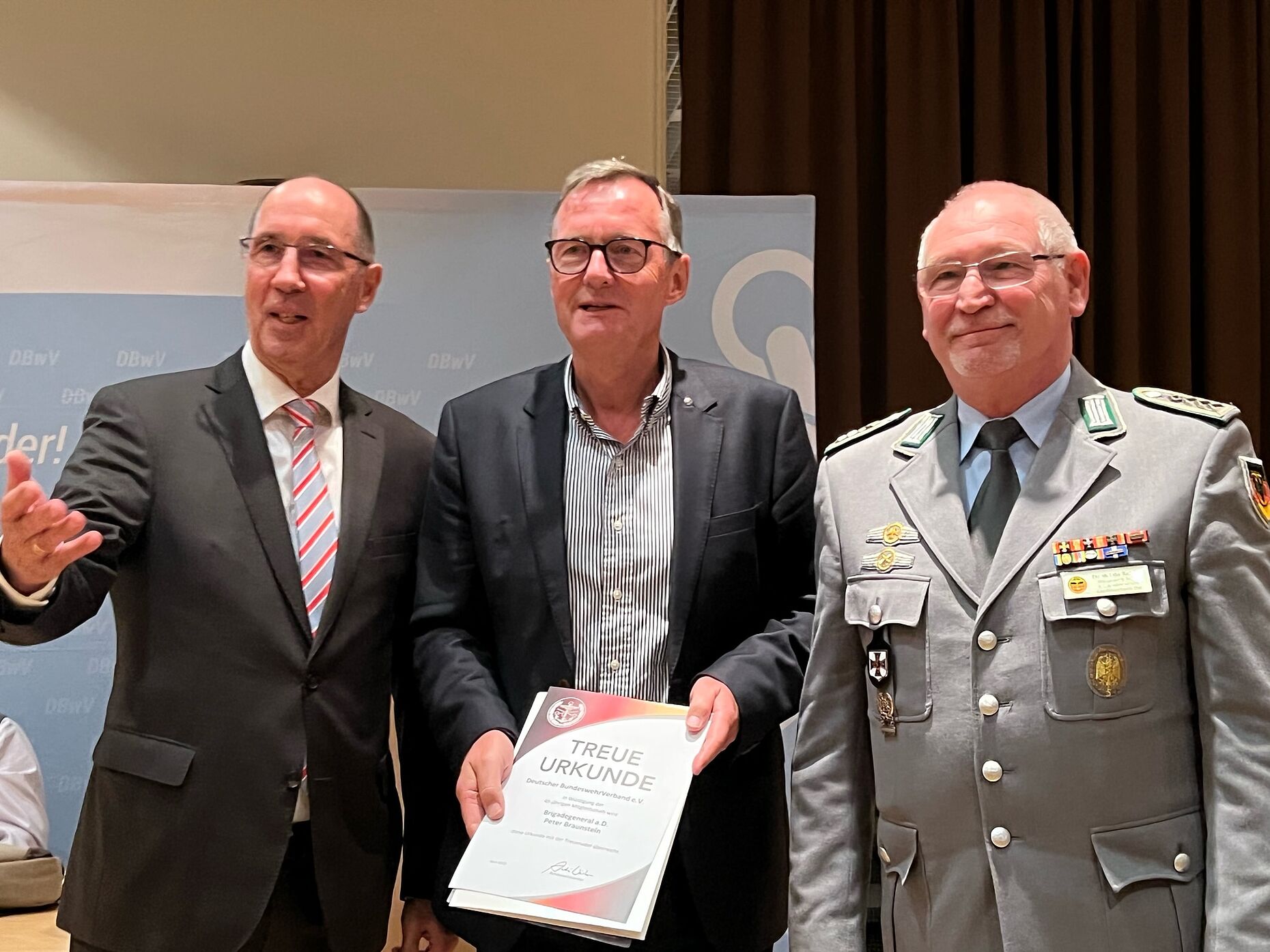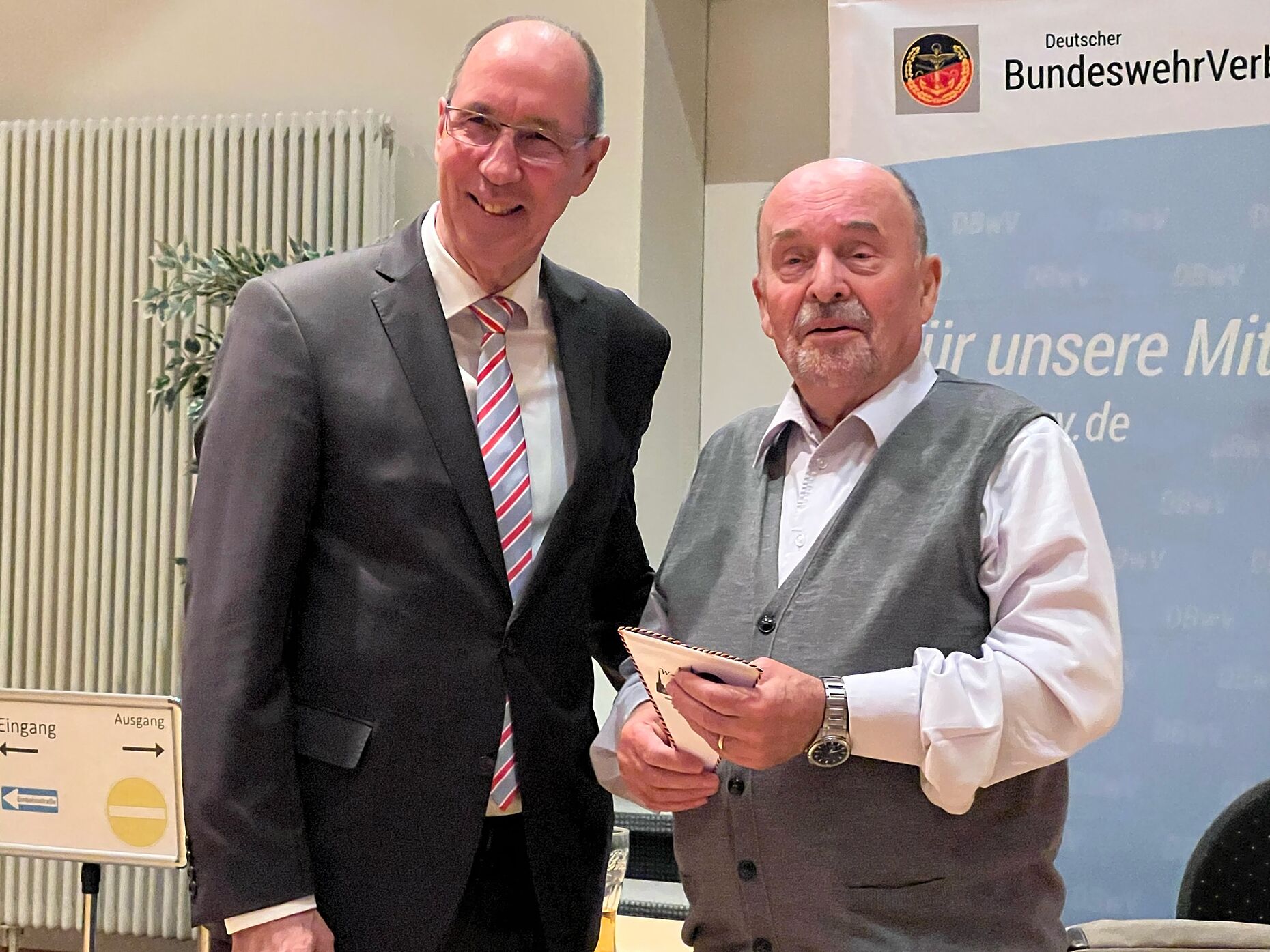 Der Bezirksvorsitzende Berlin / Brandenburg, Stabsfeldwebel a.D. und Oberstabsfeldwebel d.R. Frank Udo Reiche, nutzte die Veranstaltung, um den anwesenden Brigadegeneral a.D. Peter Braunstein mit der Treueurkunde für 40-jährige Mitgliedschaft sowie der zugehörenden Nadel auszuzeichnen. Bei einem kleinen Imbiss im Casino klang der Abend mit angeregten Gesprächen aus.