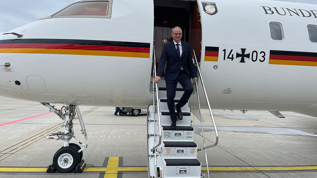 Rüstungsstaatssekretär Benedikt Zimmer bei seiner Ankunft in Bratislava. Foto: BMVg/Twitter