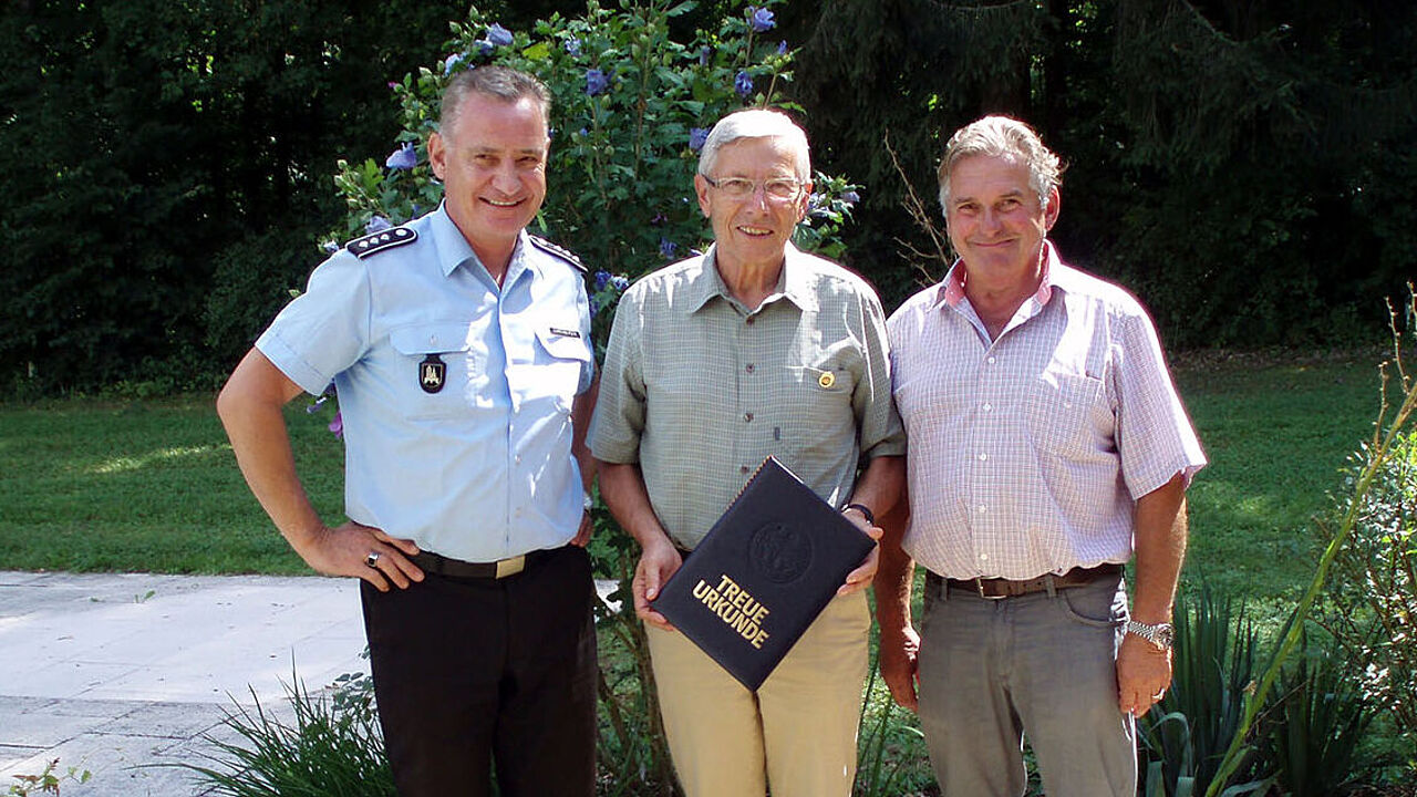 Bezirksvorsitzender Ehrenberger mit dem Geehrten Oberstabsfeldwebel a.D. Werner Rößler und dem Vorsitzenden der KERH Guggenberger Foto: DBwV