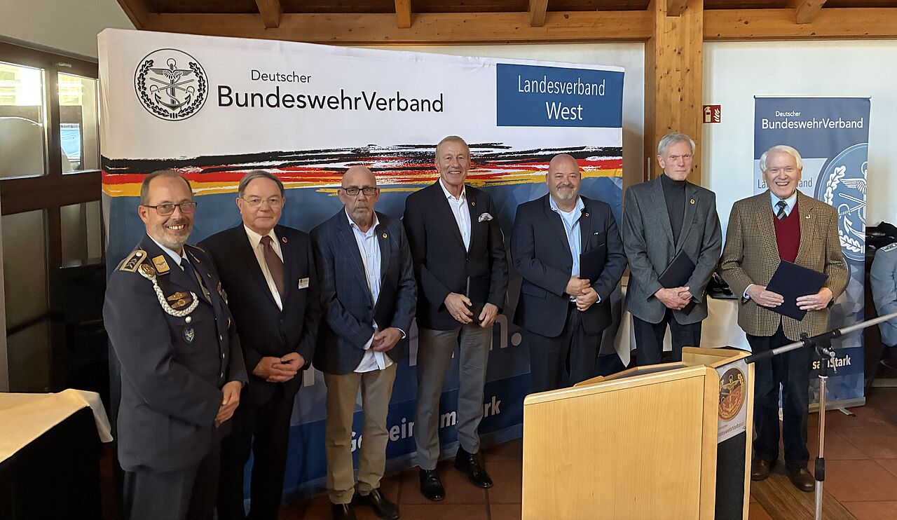 Für den kurzfristig verhinderten Bundesvorsitzenden, Oberst André Wüstner, hielt der Justitiar des DBwV, Major d.R. Christian Sieh, die Laudatio. Auch der Vorsitzende der StoKa Bonn, Oberstleutnant Dr. Linus Strelau, dankte für die geleistete Arbeit. Es folgte die Ehrung langjähriger Mitglieder. Zunächst wurden durch den Landesvorsitzenden West, Stabsfeldwebel Volker Keil, die Amtsinspektorin a.D. Dagmar Grubert und der Stabshauptmann a.D. Andreas Möller für ihre langjährige Vorstandsarbeit mit silberner Nadel und Ehrenurkunde ausgezeichnet. Eine Treueurkunde nebst Anstecknadel erhielten: Oberstabsfeldwebel a.D. Roland Evertz (für 25 Jahre), Oberst a.D. Thomas Greggersen (40), Stabshauptmann a.D. Walter Schermack (50), Stabshauptmann a.D. Franz Halbritter (60) sowie Oberstleutnant a.D. Bernhard Wacker, der bereits seit 65 Jahren Mitglied ist. Alles in allem war es eine rundum gelungene Veranstaltung, in deren Verlauf auch für die Soldaten- und Veteranen Stiftung gesammelt wurde. Die Stiftung durfte sich über 630 € freuen.