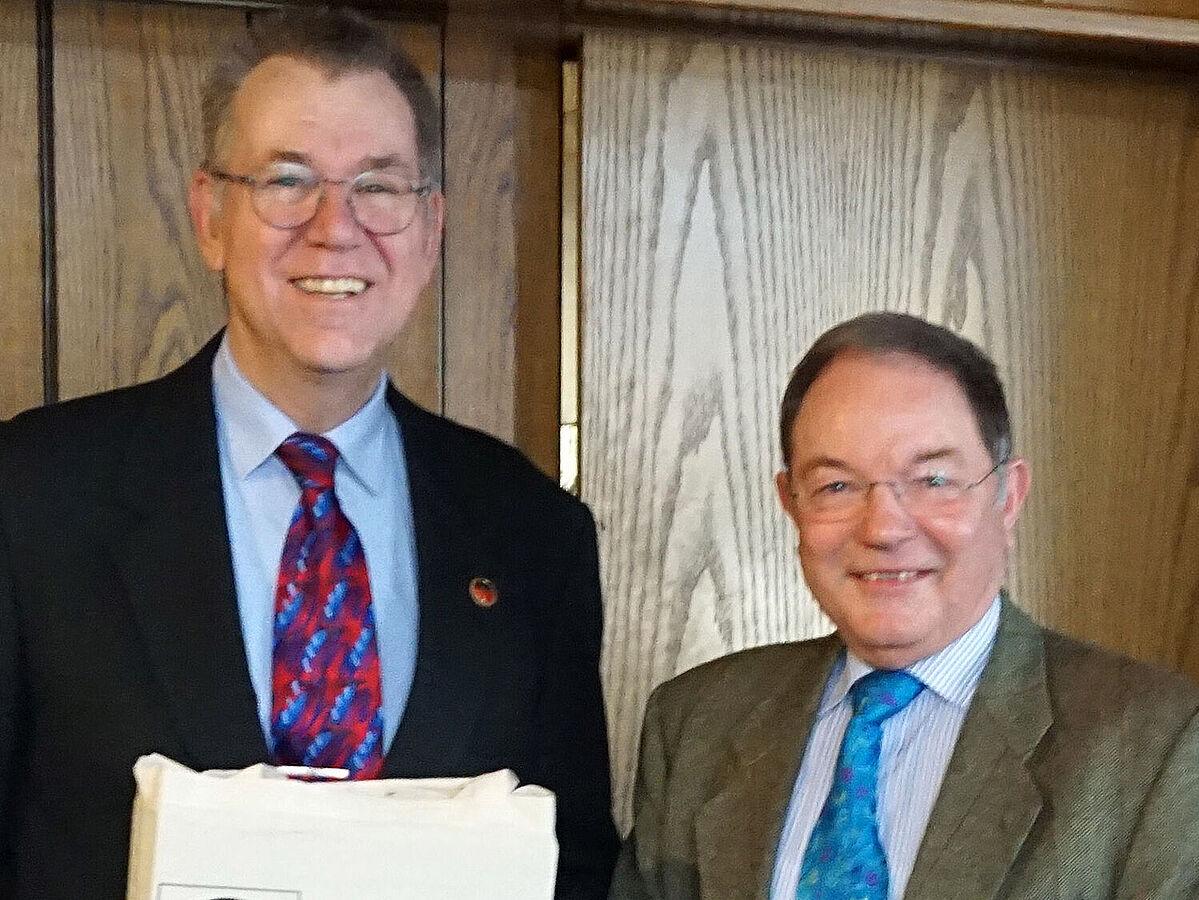 Die traditionelle Jahresauftaktveranstaltung nutzte Fregattenkapitän a.D. Wolfgang Windolph, Vorsitzender der KERH Großraum Bonn, um Oberstleutnant a.D. Hans-Joachim Unger mit einem kleinen Präsent für sein Engagement zu danken. Den Dank verband Windolph mit der Bitte an „seinen“ Regionalbeauftragten der Ehemaligen im Raum Meckenheim seine Aufgabe weiterhin so engagiert fortzuführen - Unger organisiert in regelmäßiger Folge Vortragsveranstaltungen für die DBwV Mitglieder im Raum Rheinbach, Meckenheim, Swisttal und Wachtberg.