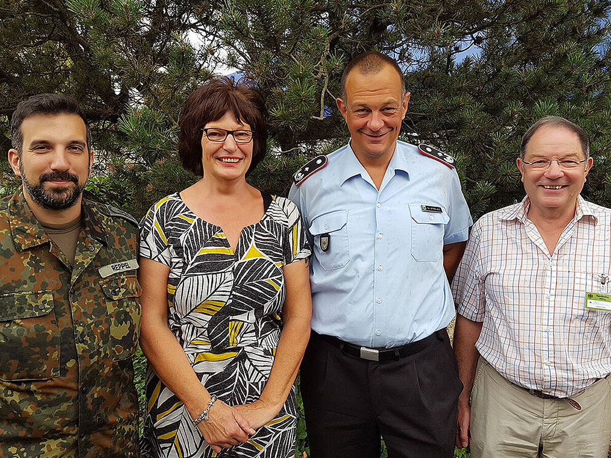 Stabsfeldwebel Andreas Reppel, Amtsinspektorin Dagmar Grubert, Oberstleutnant Linus Strelau und Fregattenkapitän a.D. Wolfgang Windolph (v.l) wurden in ihren Ämtern bestätigt Foto: Markus Dönig