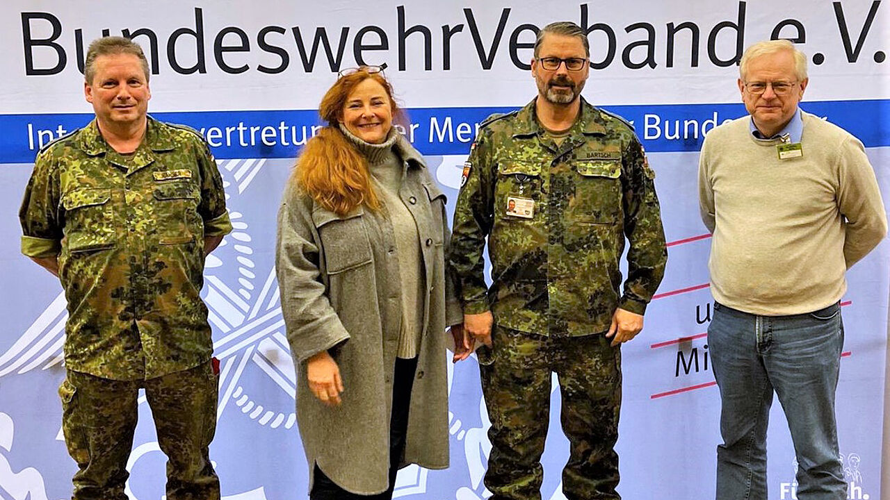 Die Ziele des bestätigten Vorstandes? „Mehr Mitglieder für die Truppenkameradschaft, mehr Mitglieder bei Veranstaltungen, mehr Informationen für die Mitglieder“, so Ralf Bartsch (3.v.l.) nach der Wahl. Hier mit Hptm Ralf Nahser, RAR´in Indre Bonesteel und Hptm a.D. Volker Jung (v.l.). Foto: DBwV/Hansen