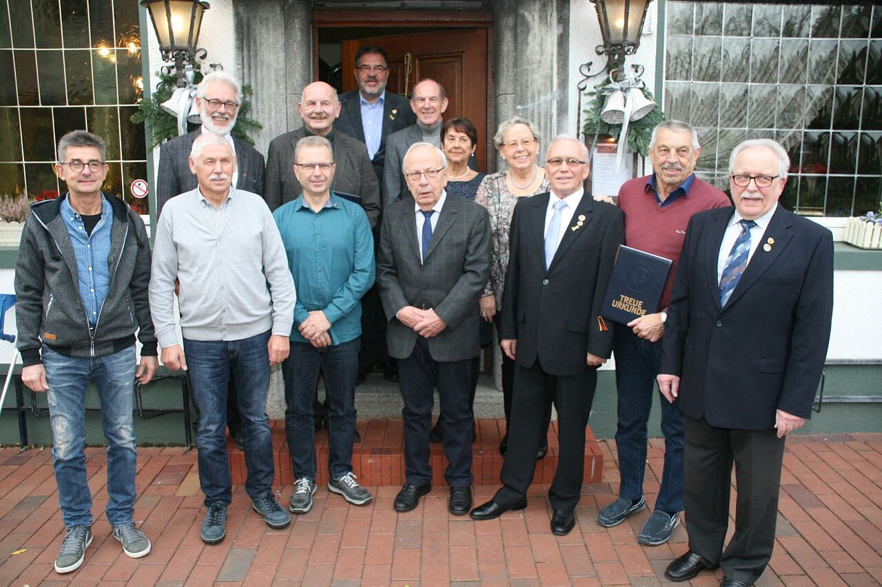 Urkunde und Nadel für langjährige Mitgliedschaft erhielten folgende Mitglieder: 50-Jahre: Oberstleutnant a.D. Gottfried Schulze, Oberstabsfeldwebel a.D. Josef Neumann, Feldwebel a.D. Rainer Stibale. 40 Jahre: Oberfeldwebel d.R. Manfred Grams. 25 Jahre: Oberstabsfeldwebel a.D. Rüdiger Bosner. Anschließend wurden Hauptmann a.D. Heinz-Dieter Rahlmann (ehemaliger Vorsitzender) und Stabsfeldwebel a.D. Helmut Schulz verabschiedet und geehrt.