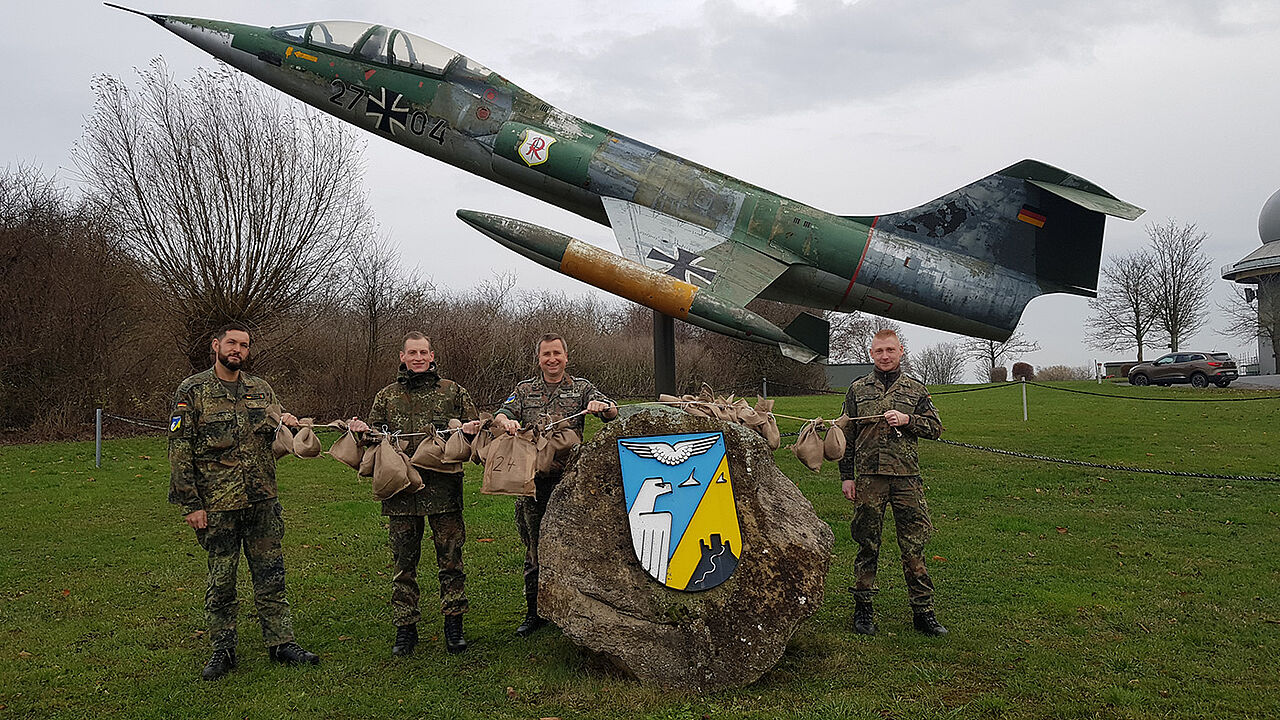 Weihnachtsgrüße aus Brakel-Auenhausen an den Kameraden in Estland schickten die DBwV-Mitglieder: Hauptmann Daniel Walther, Hauptmann Marian Schütze, TruKa Vorsitzender Stabsfeldwebel Stefan Riep und Hauptfeldwebel Christopher Gutt Foto: sTruKa Brakel Auenhausen