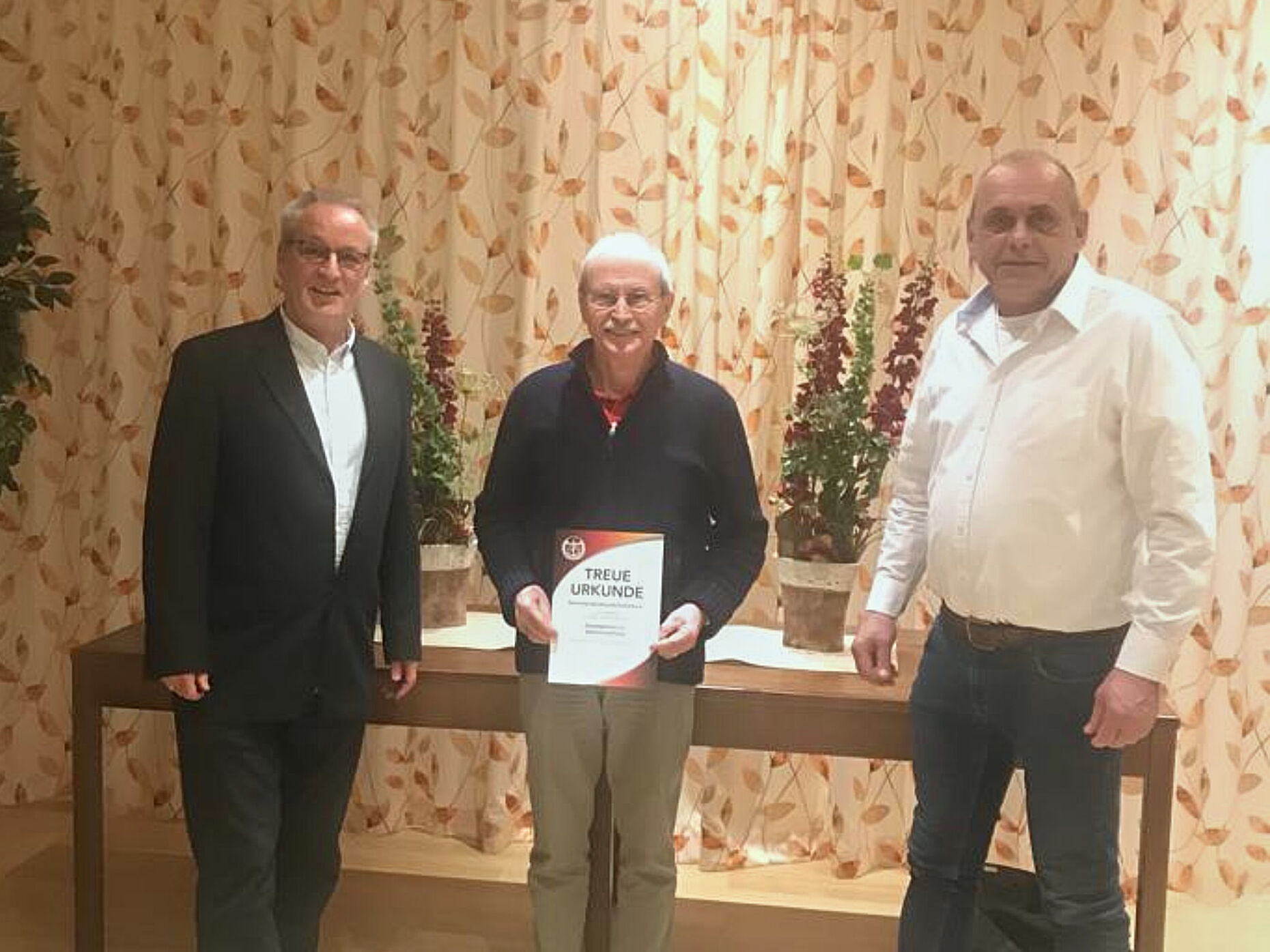 Brigadegeneral a.D. Manfred Hofmeyer, vor seiner Zurruhesetzung Stellv. Kommandeur der 10. Panzerdivision in Sigmaringen, ist nunmehr fünf Jahrzehnte Mitglied im Deutschen BundeswehrVerband. Dafür überreichten ihm der stellv. Vorsitzende der Kameradschaft ERH, Oberst a.D. Peter Lucas, und der Bezirksvorsitzende, Stabsfeldwebel a.D. Matthias Schneider, am Ende der Veranstaltung die Treueurkunde und -nadel.