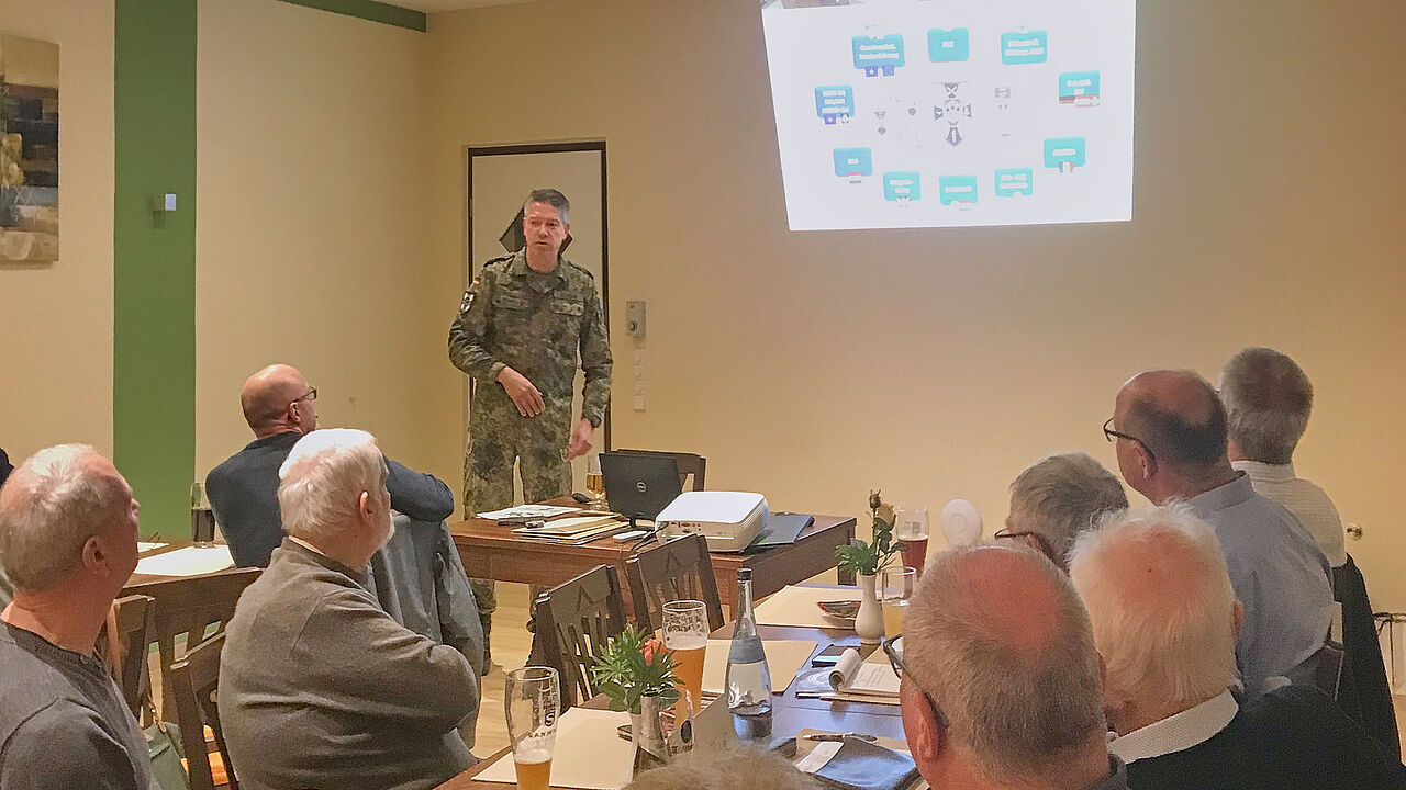 Oberst Lutz Nikolaus Neumann war im März 2023 Gast bei der Kameradschaft ERH Bruchsal. Vom Stellv. Kommandeur und Chef des Stabes ABCAbwKdoBw erfuhren die Mitglieder wissenswertes über die Aufgaben des ABC-Abwehrkommandos in der Landes- und Bündnisverteidigung.