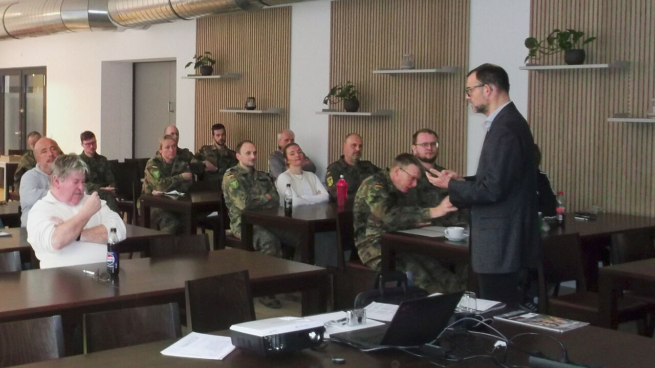 Als Mitglied im Verteidigungsausschuss skizzierte Edelhäußer zentrale sicherheitspolitische Herausforderungen und gab Einblicke in aktuelle Debatten rund um die Ausstattung der Bundeswehr sowie laufende und geplante Vorhaben im Bereich der Verteidigungspolitik. Dabei hob er die Bedeutung eines engen Austauschs zwischen politischer Ebene und Streitkräften hervor.