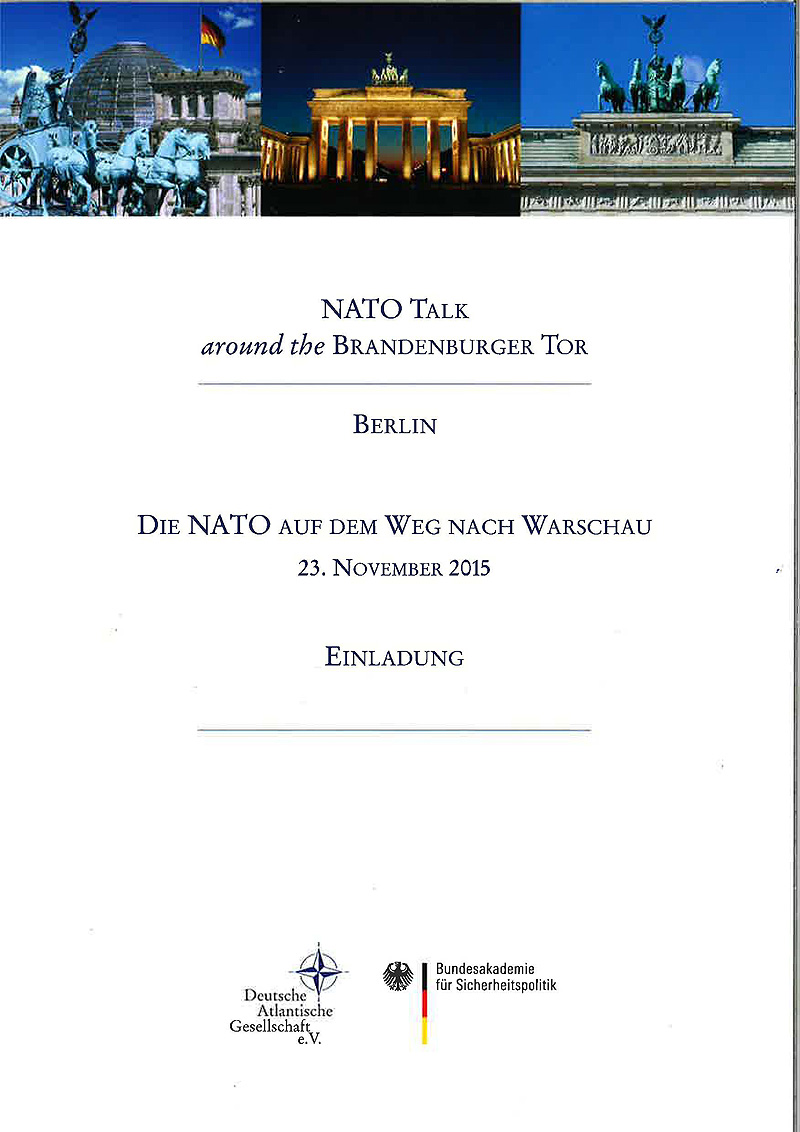 Unter dem Motto „Die Nato auf dem Weg nach Warschau“ fand Anfang der Woche der „Nato Talk around the Brandenburger Tor“ im traditionsreichen Berliner Hotel Adlon am Pariser Platz statt. Natürlich mit dabei: der Deutsche BundeswehrVerband, vertreten durch den Bundesvorsitzenden, Oberstleutnant André Wüstner, und seinen Stellvertreter, Hauptmann Andreas Steinmetz.