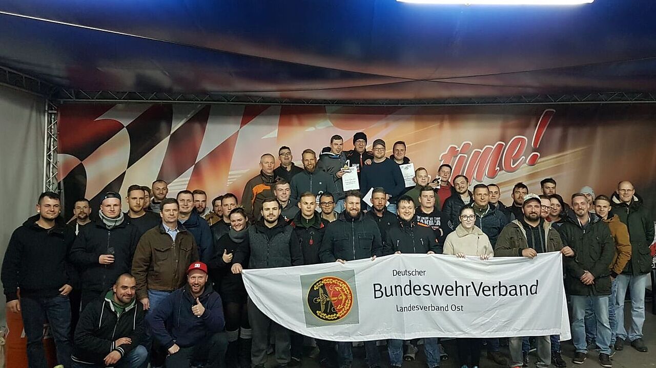 Teilnehmer am GoKart-Rennen TruKa LogBtl 171. Foto: DBwV/ Diefert