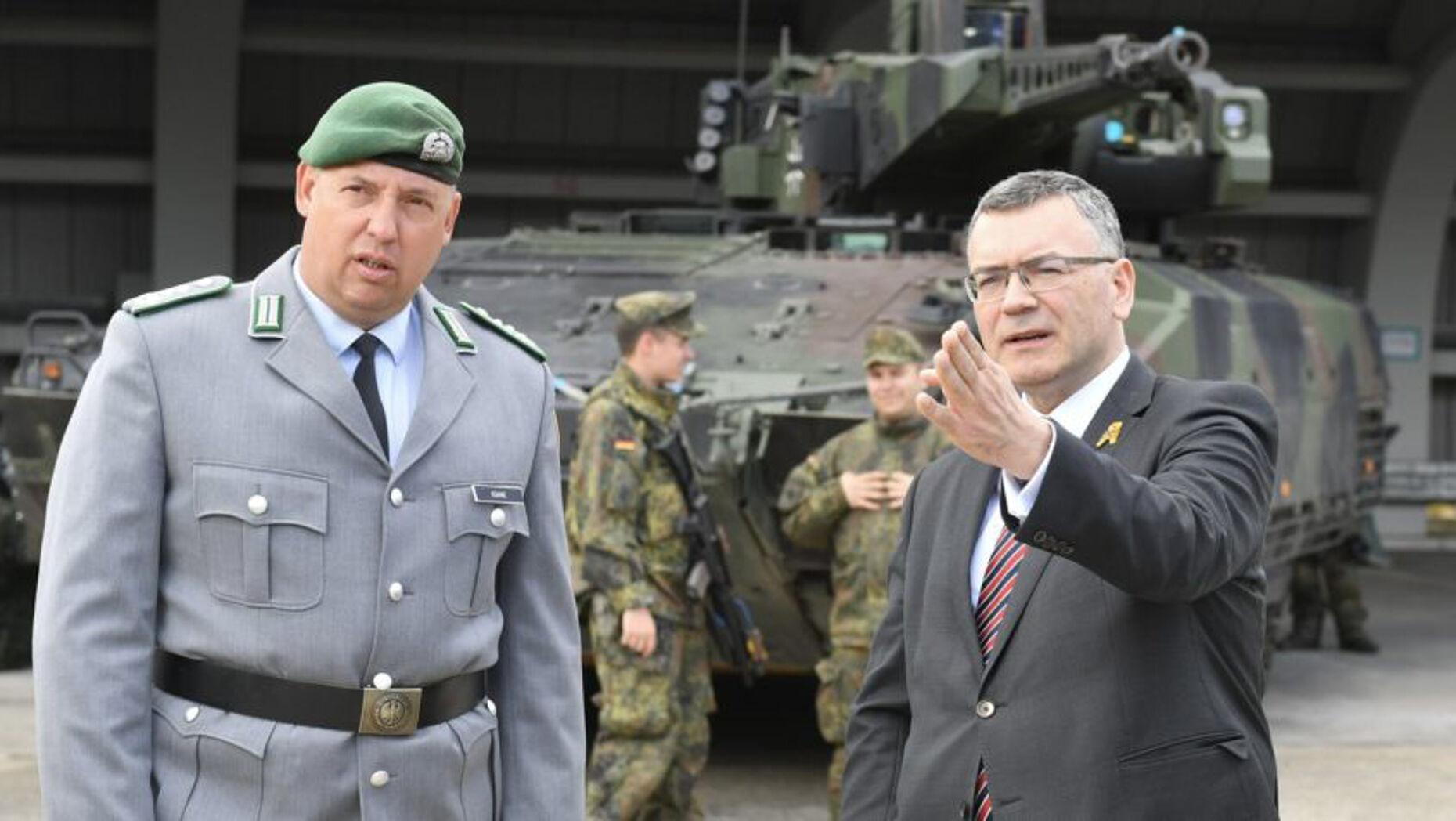 Bei seinem Besuch der Panzerbrigade 12 „Oberpfalz“ in Cham informierte sich der Staatsminister von der Leistungsfähigkeit des Verbandes. Dabei forderte er die zügige Umsetzung von Investitionen in die Bundeswehr: „Unsere Soldatinnen und Soldaten sind gut ausgebildet und hochmotiviert. Wir schulden ihnen für ihre Aufgaben die bestmögliche Ausrüstung. Bayern begrüßt ausdrücklich die Ankündigung der Bundesregierung, 100 Mrd. Euro zusätzlich in Ausrüstung und Fähigkeiten der Bundeswehr zu investieren. Wir haben diese bessere Finanzierung der Bundeswehr seit Jahren gefordert. Aber die Ampel muss jetzt auch liefern, damit die Ausrüstung zügig bei der Truppe ankommt. Ankündigungen allein reichen nicht.“