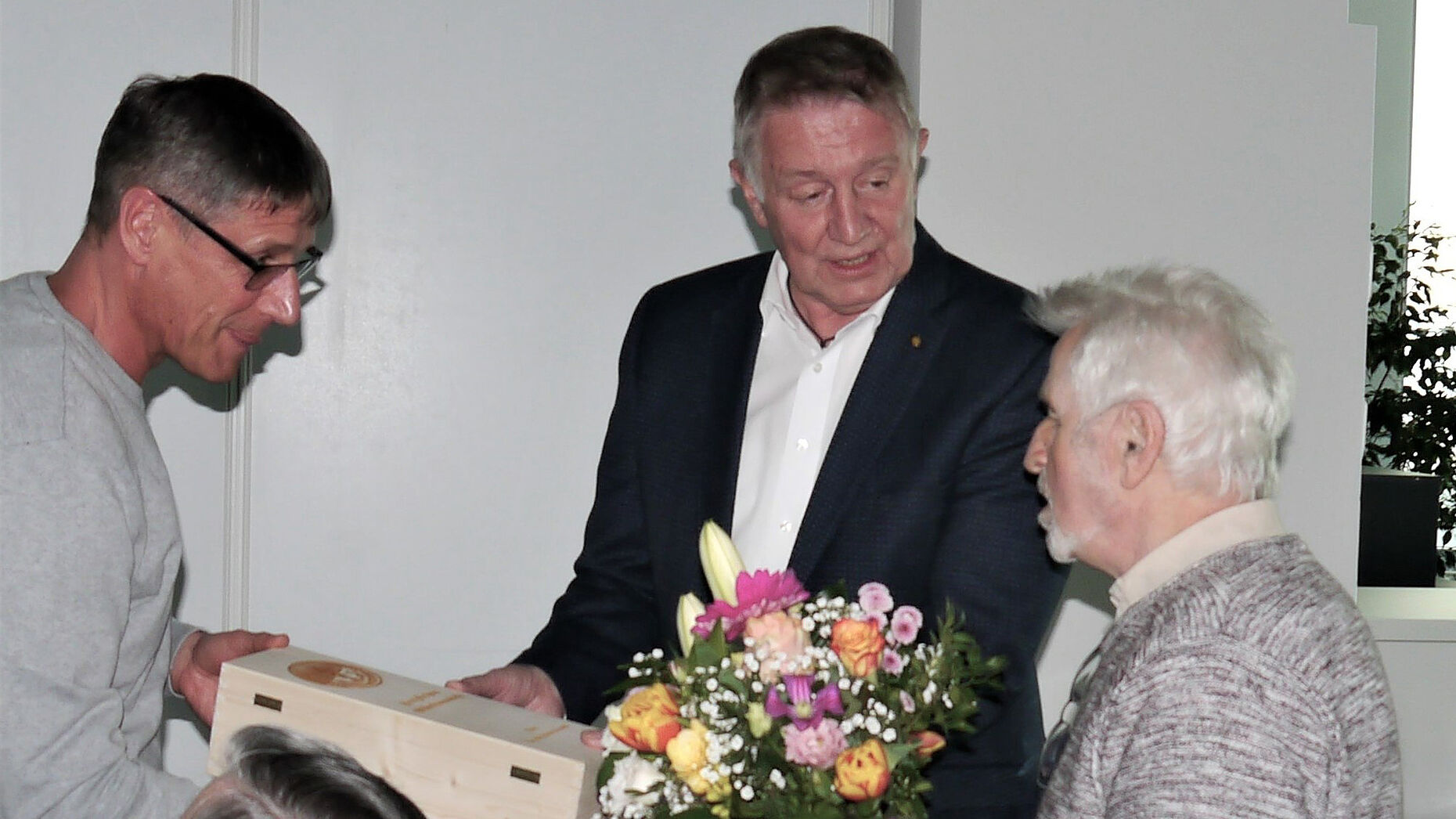 Ein besonderer Moment war es dann für den Vorsitzenden, gemeinsam mit Oberstleutnant Pospischil dem langjährigen Mitglied, Major a. D. Erwin Herrmann zum 90. Geburtstag gratulieren zu können.