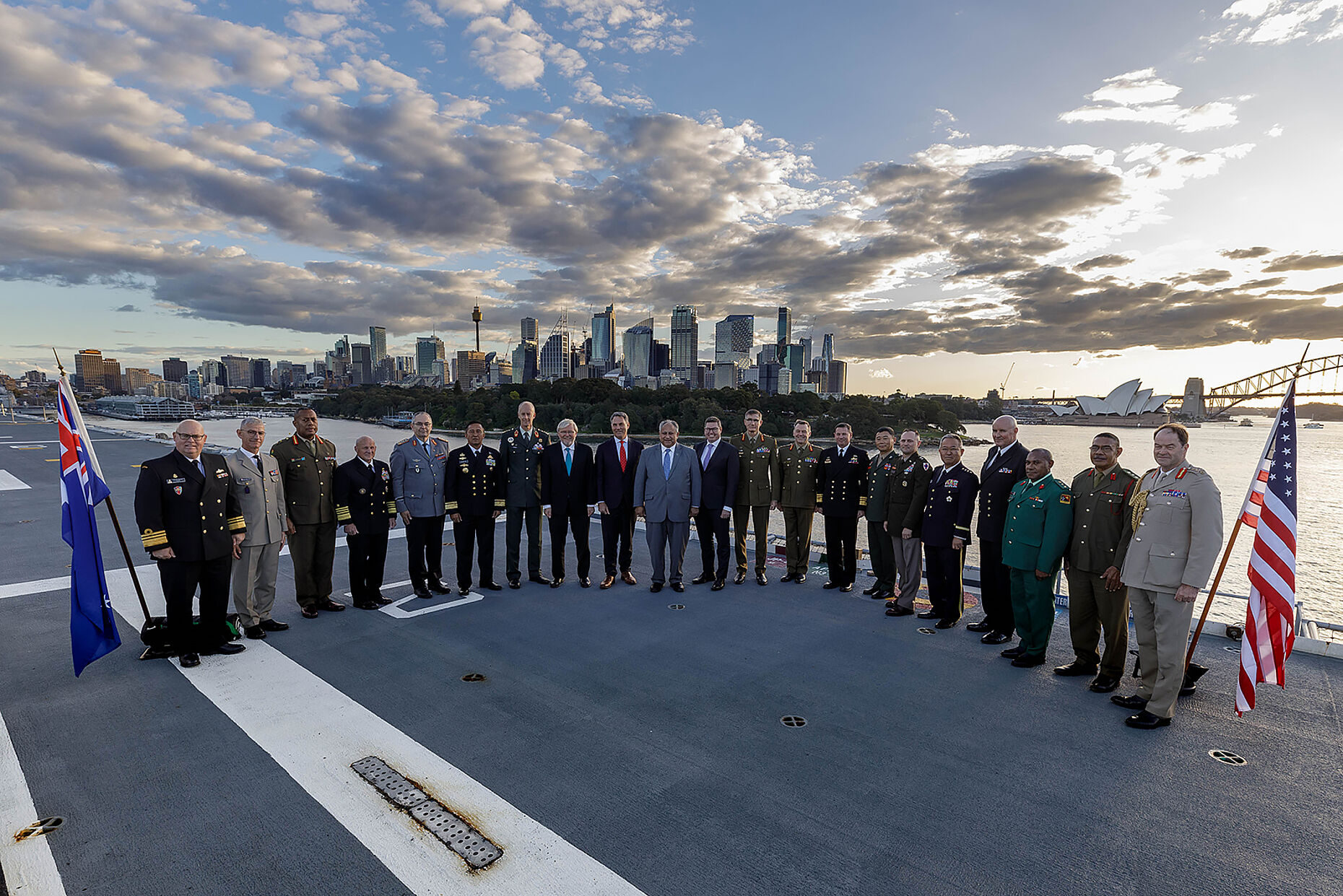 Generalleutnant Mais nahm an der Eröffnungsfeier der Übung auf dem Deck des australischen Hubschrauberträgers HMAS „Canberra“ im Hafen der Metropole Sydney teil. Für den Inspekteur des Heeres ist das Vertiefen der sicherheits- und verteidigungspolitischen Beziehungen mit den Alliierten in der Region das wesentliche Ziel: „Wir wollen ein verlässlicher, glaubwürdiger und leistungsfähiger Partner sein. Für mich steht die militärische Zusammenarbeit und hier die der Landstreitkräfte im Vordergrund“, so Mais.
