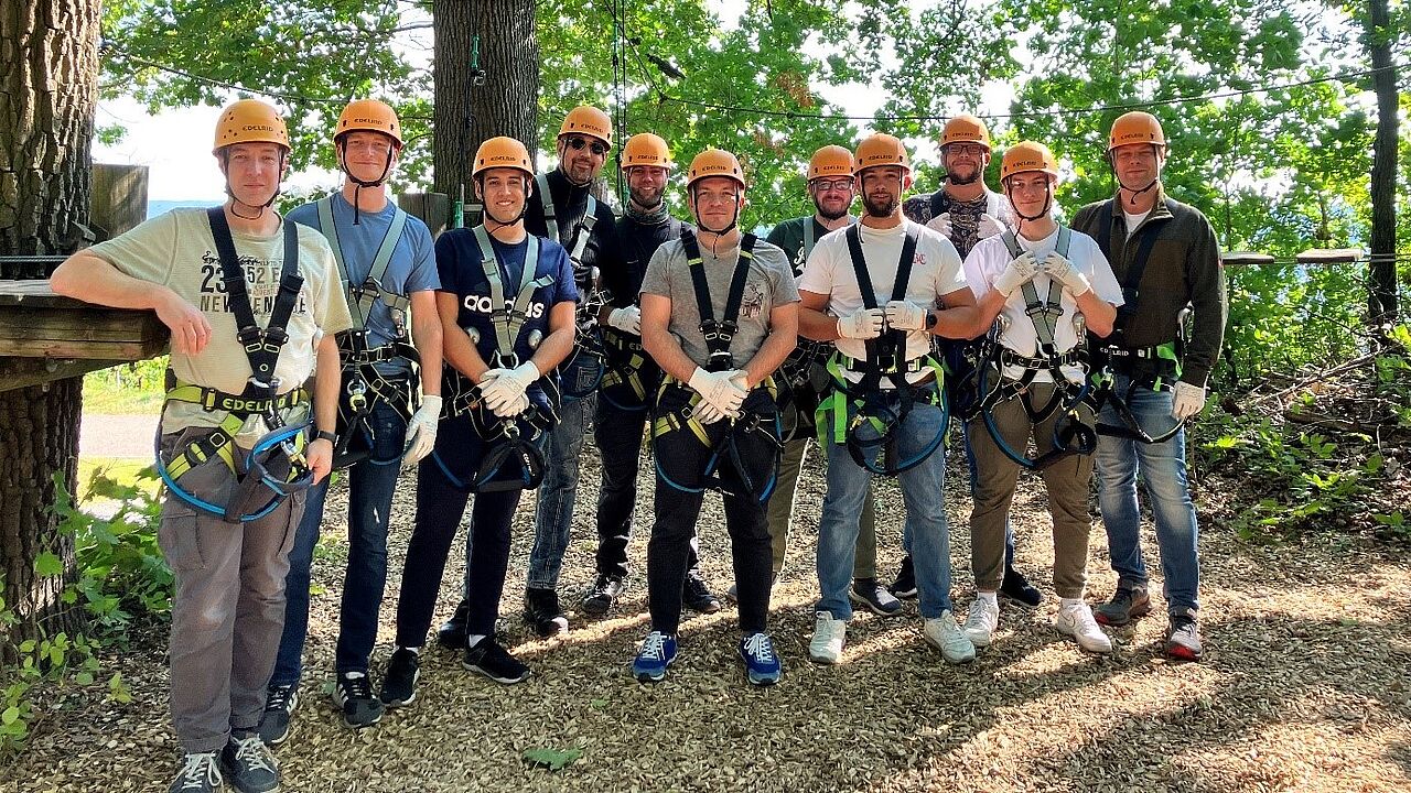 Elf Unerschrockene der 7./Transporthubschrauberregiment 30 aus Niederstetten verlegten zum Teambuilding in den Waldkletterpark in Weinsberg, um ihre eigenen Grenzen auszutesten und – wo möglich – zu überwinden. Ein Highlight des Parcours war für alle Teilnehmer der Sprungturm.