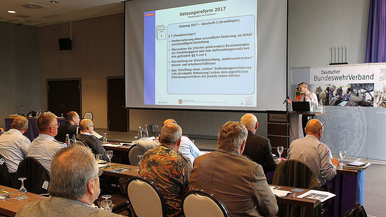 Aufmerksam verfolgten die Delegierten den Ausführungen. (Foto: DBwV/kuh)