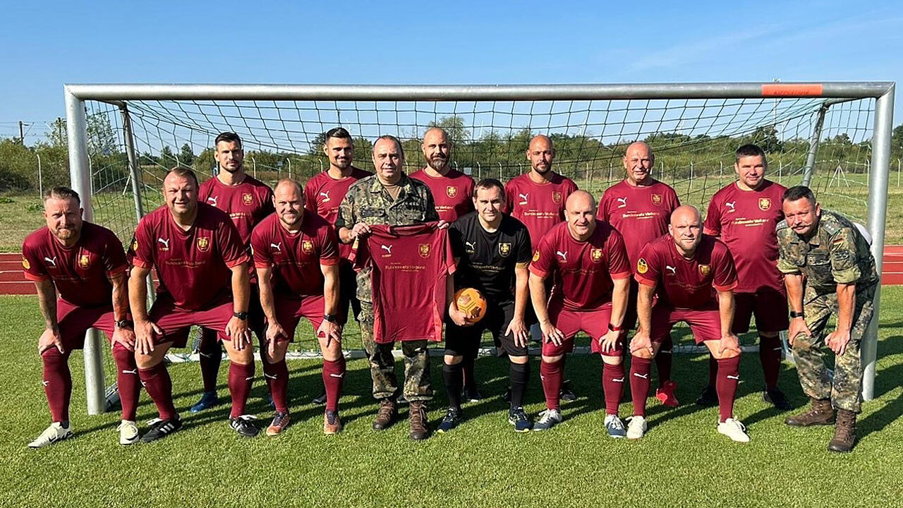 Für den Vorsitzenden der TruKa, Hauptmann Mike Becher, stand außer Frage, dass der DBwV die Chance, hier zu unterstützen und dadurch zukünftig mit dem Logo des Verbandes auf der Brust der Spieler vertreten zu sein, nutzen sollte. Im Rahmen eines Trainings Ende September war es nun so weit, dass die neuen Trikots im Beisein des Landesvorsitzenden, Hauptmann Ralf Baasch, an die Mannschaft übergeben wurden. „Die Unterstützung der Mannschaft war für die TruKa eine absolute Herzensangelegenheit. Für mich als begeisterter Fußballer war es klar, dass sich die TruKa in ganzer Breite für das Team engagiert und damit einen Teil zum Erfolg beiträgt”, so der Vorsitzende der TruKa bei der Übergabe an den Mannschaftsverantwortlichen, Oberstabsfeldwebel Nico Dietzmann.