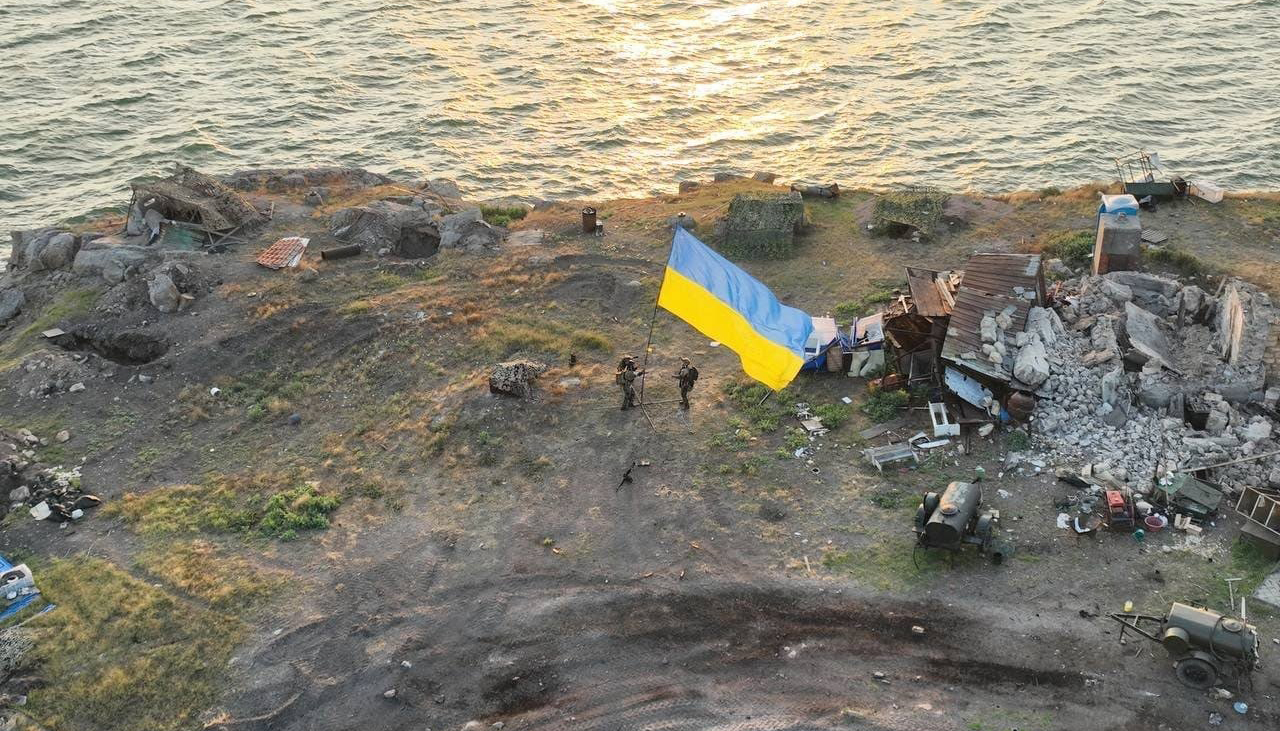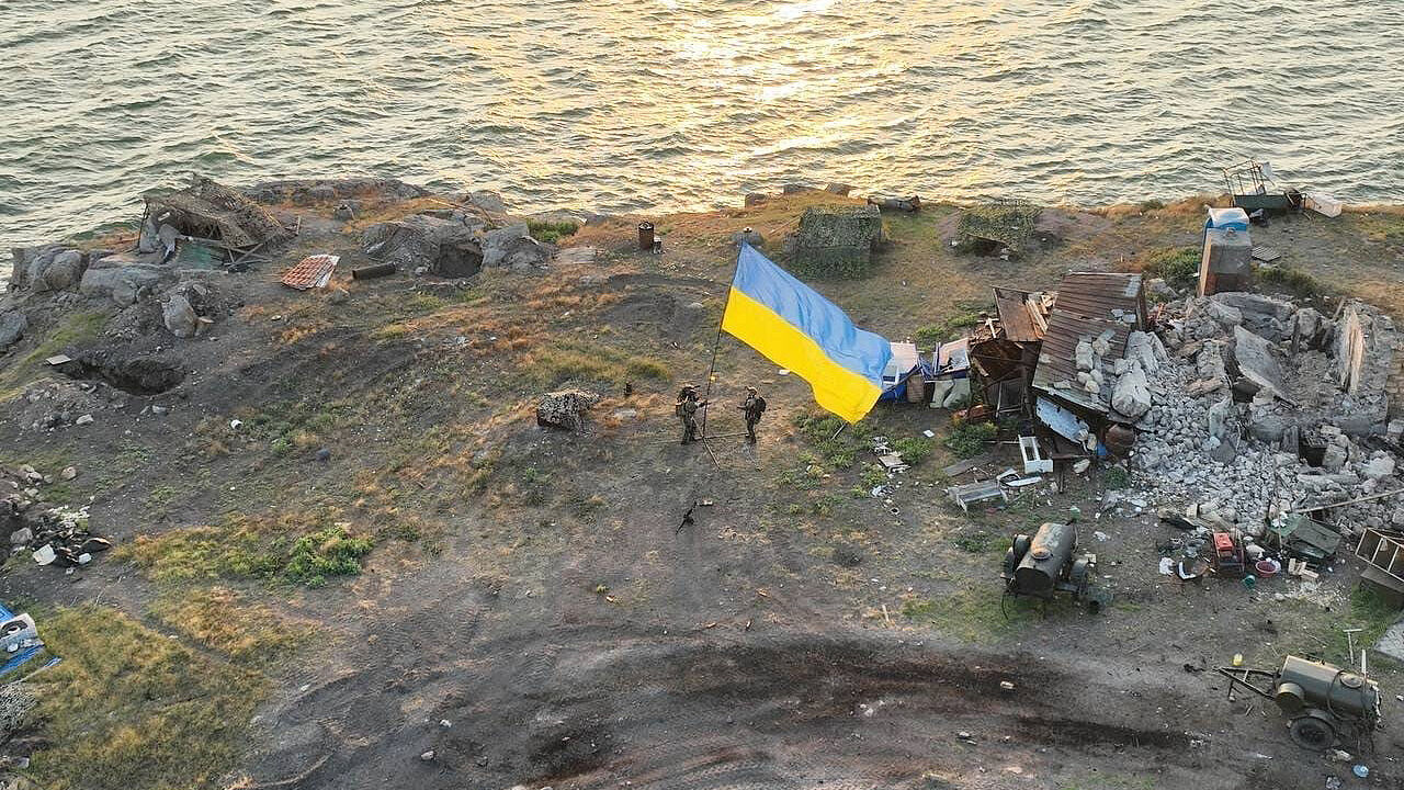 Die maritime Dimension des Kriegs in der Ukraine: Mehrere Monate war Zmiinyi, die "Schlangeninsel", von russichen Kräften besetzt. Seit dem Sommer weht wieder die ukrainische Flagge über dem kleinen Eiland im Schwarzen Meer. Foto: Twitter