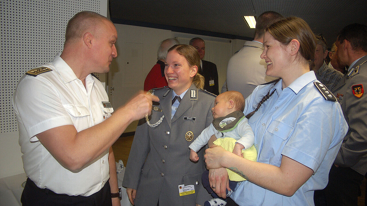 Kindererziehung und Ehrenamt sind vereinbar – Hauptmann Adrienne Meyer (re.) zeigt es. Foto: DBwV/LV Nord