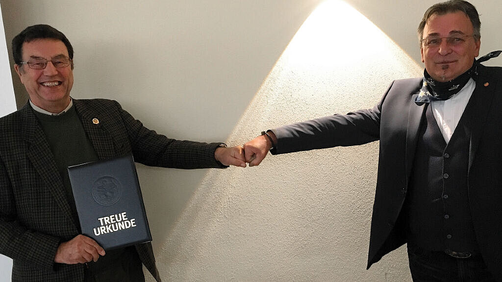 Eine Überraschung hat der Bezirksvorsitzende nach seinem Vortrag zu den aktuellen verbandspolitischen Themen noch im Köcher: Er überreichte Vorsitzendem Pauli für 50 Jahre Mitgliedschaft die Treueurkunde mit Treuenadel.