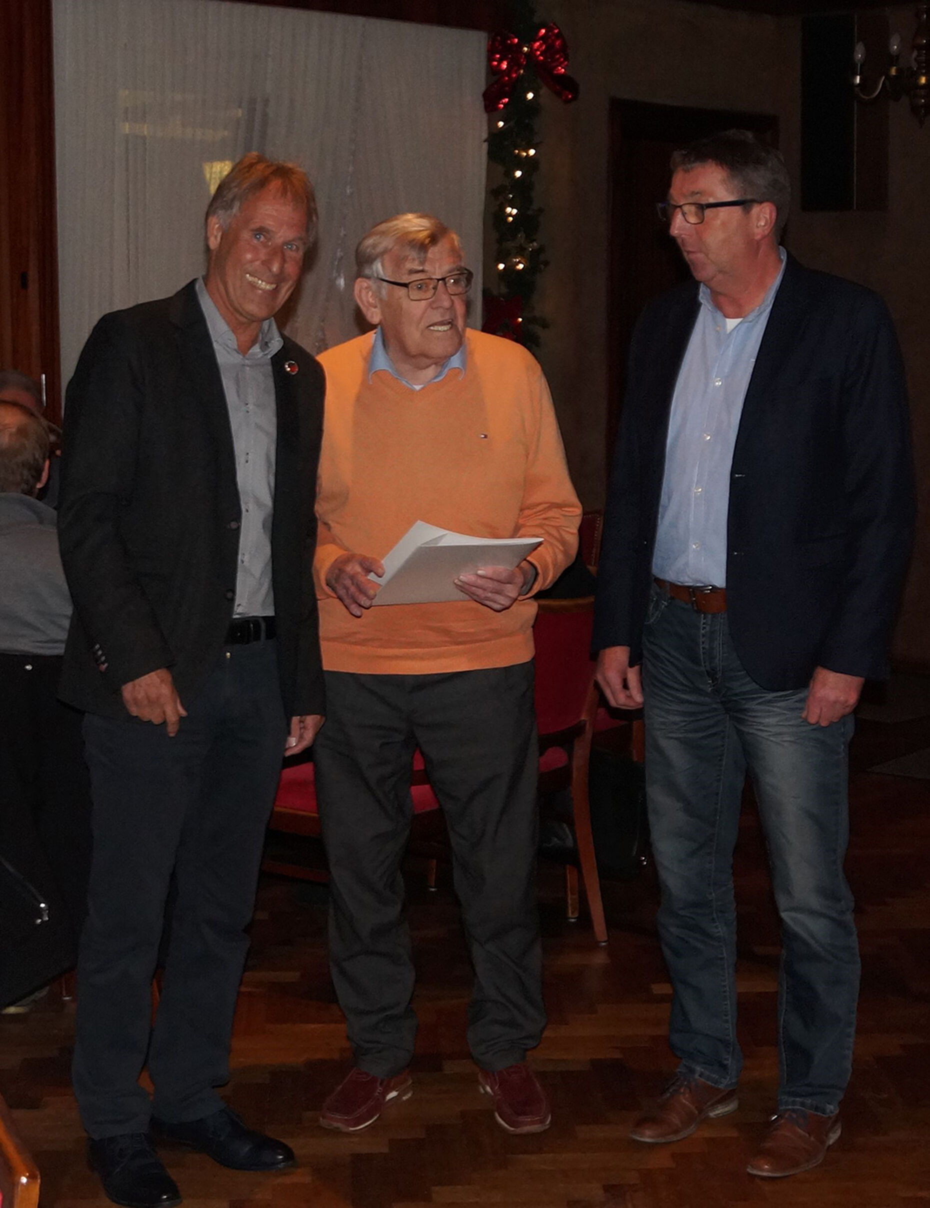 Bevor der köstliche Grünkohl serviert wurde, wurden noch verdiente Mitglieder ausgezeichnet: Oberstabsfeldwebel a.D. Herrmann Gebhardt aus Hennstedt für 40 Jahre Mitgliedschaft, Hauptfeldwebel a.D. Fritz Heck aus Büsum für 50 Jahre und abschließend Major a.D. Mandfred Trube aus Albersdorf für 60 Jahre Zugehörigkeit zum DBwV.