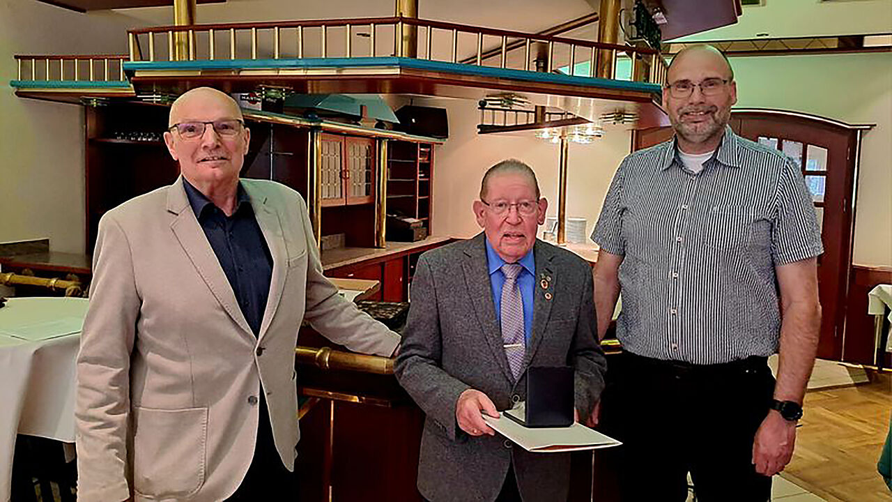 Hauptmann a.D. Michael Scholz sprach ein Grußwort und berichtet über den Sachstand bei der anstehenden Besoldungserhöhung. Zusammen mit Stark ehrte er Hauptmann a.D. Jürgen Meyer und Stabsfeldwebel a.D. Jürgen Thiergardt für ihre 50-jährige Mitgliedschaft. Hauptmann a.D. Sven von Ehrenkrook erhielt für ein halbes Jahrhundert Mandatstätigkeit die 50-jährige Urkunde und Plakette.