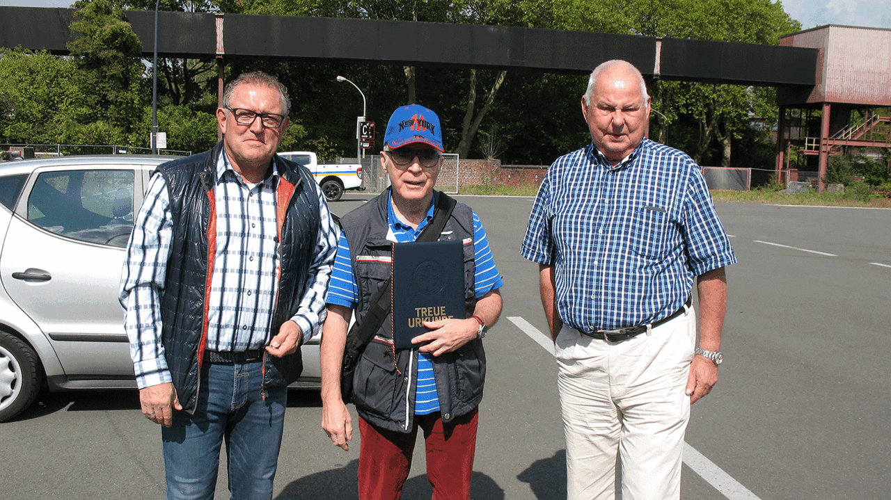 Ehrung im Weltkulturerbe: Jubilar Weuters umgeben von Uwe Börner (r.) und Jürgen Boes. Foto: A. Schnellbach