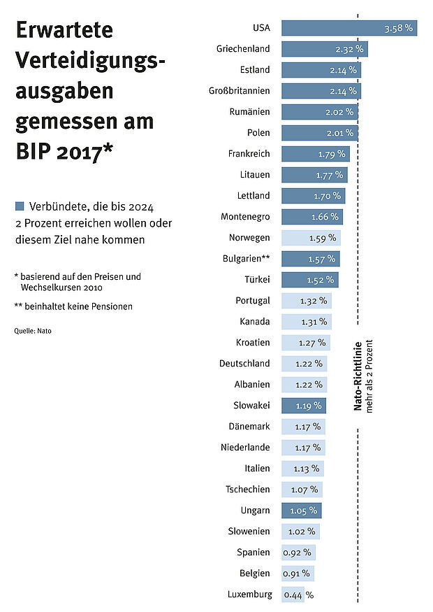 Dieses Jahr kommt es drauf an, und der Einsatz ist hoch: Es geht um nicht weniger als um die Einsatzbereitschaft der Bundeswehr. Das kostet Geld - aber die Mittel sind gut angelegt. Die personellen und materiellen Mängel der Bundeswehr sind hinlänglich bekannt, Schiffe oder Panzer, die nicht fahren und Flugzeuge oder Hubschrauber, die kaum fliegen - von der lückenhaften persönlichen Ausstattung unserer Soldaten ganz zu schweigen.Dazu kommt: Unsere Sicherheitsarchitektur national sowie international ist enorm brüchig, unzählige Risiken und Bedrohungen wirken sich negativ auf unsere Sicherheitslage aus. Deshalb sorgen sich viele Menschen. Die Regierungskoalition muss verstehen, dass man Sicherheit nicht mehr nur verwalten, sondern vielmehr gestalten muss. Dafür braucht es neben guter Diplomatie und Entwicklungsarbeit auch eine einsatzfähige Bundeswehr. Wer völlig zurecht das transatlantische Bündnis stärken, Europa sicherheitspolitisch handlungsfähiger machen und den Menschen in Deutschland glaubwürdig verdeutlichen will, dass Ihr Schutz wieder erste und vornehmste Pflicht staatlichen Handelns ist, muss dies nachvollziehbar unter Beweis stellen.