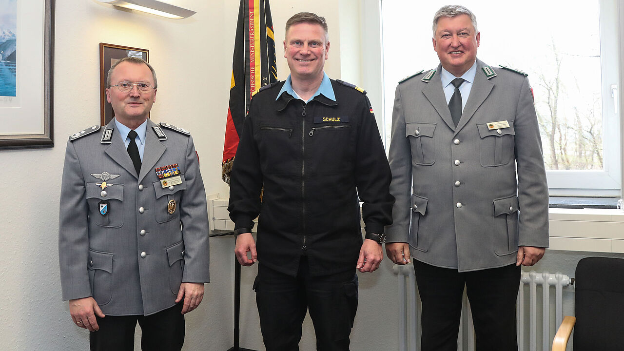 v.l.: Oberstleutnant Jörg Struckmeier, Flottillenadmiral Axel Schulz und Oberstleutnant Thomas Behr. Foto: Johann Fritsch